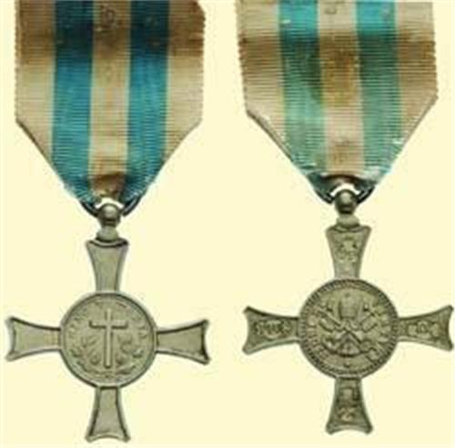 Breast badge, white metal, with later added suspension ring and original old ribbon. Small signs of age, very fine condition!