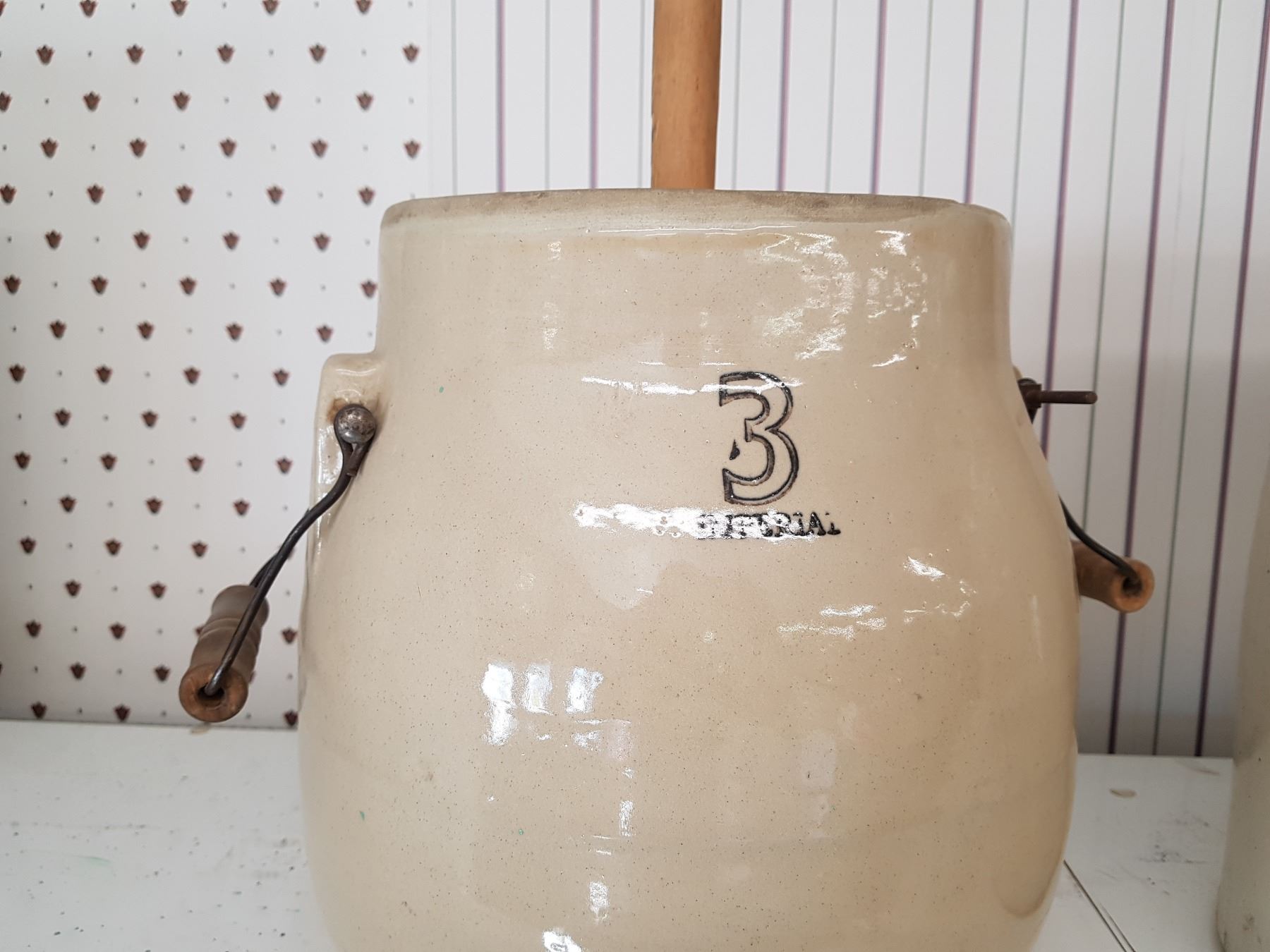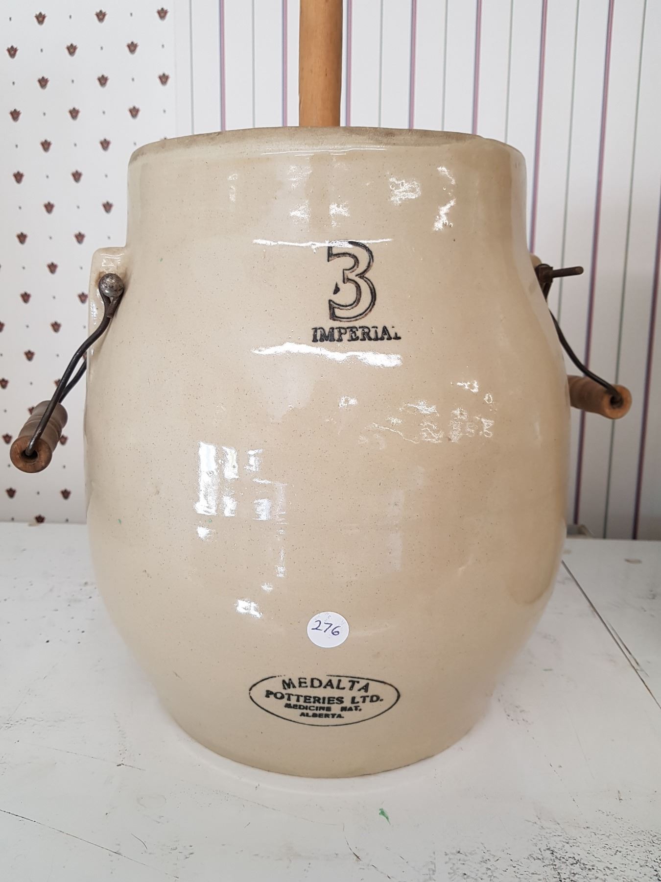 MEDALTA 3 GALLON, CERAMIC LID AND BUTTER CHURN
