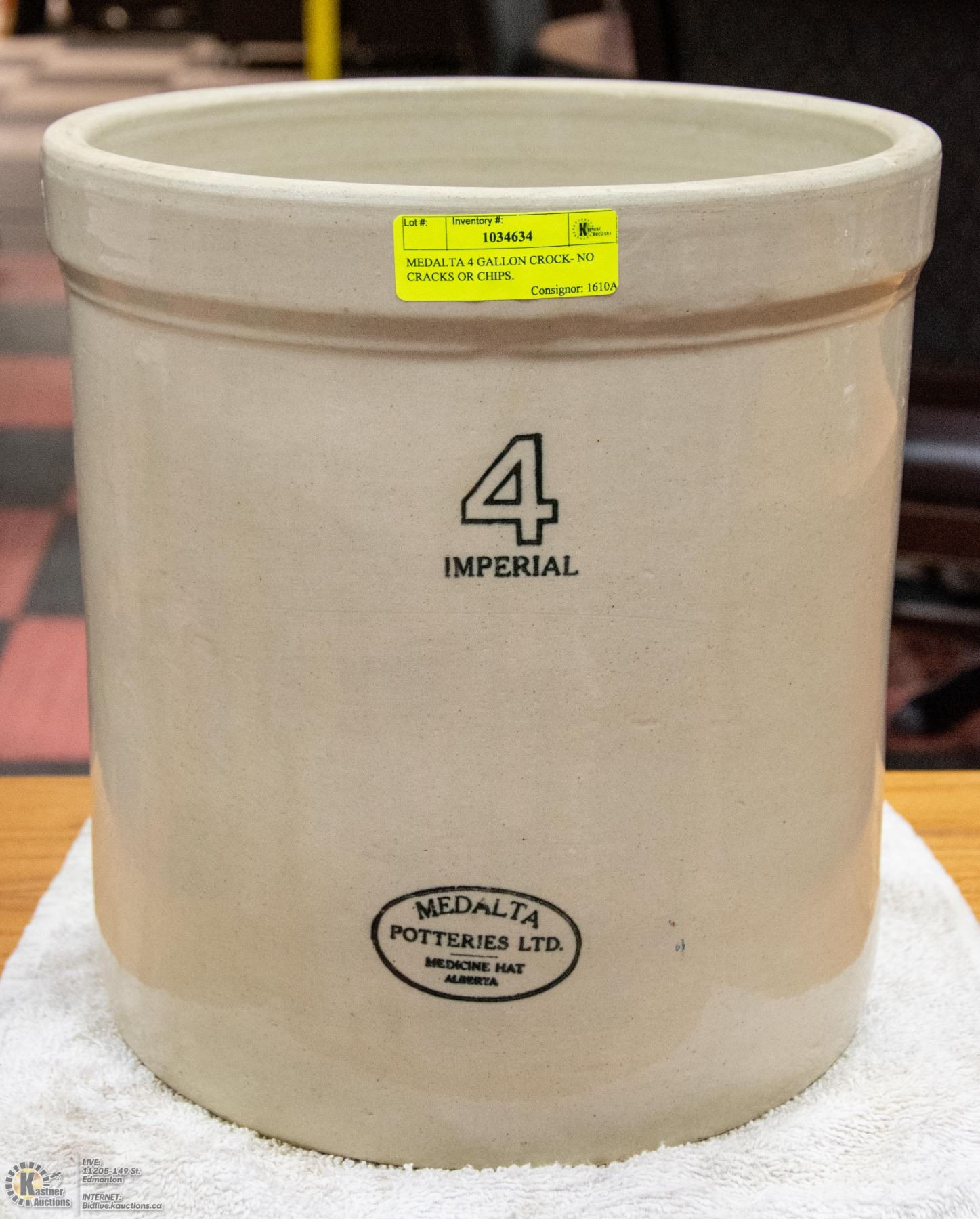 MEDALTA 4 GALLON CROCK- NO CRACKS OR CHIPS.