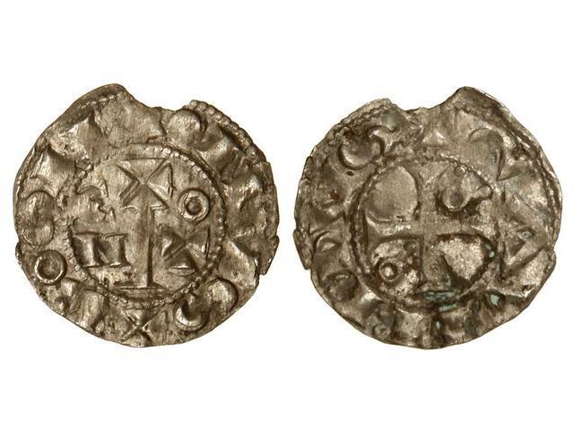 MEDIEVAL COINS: CATALONIA-ARAGÓN - Diner. GAUSFRED III. COMTAT DEL ROSSELLÓ. Anv.: ROSILIONVS. Cruz sobre pie entre C-O y N-T. Rev.: GAVFREDVS. Cruz interior con alfa y omega esquemáticas en 3er y 2º espacios. (Pequeña rotura en canto). RARA. Cru.VS-113. EBC.</