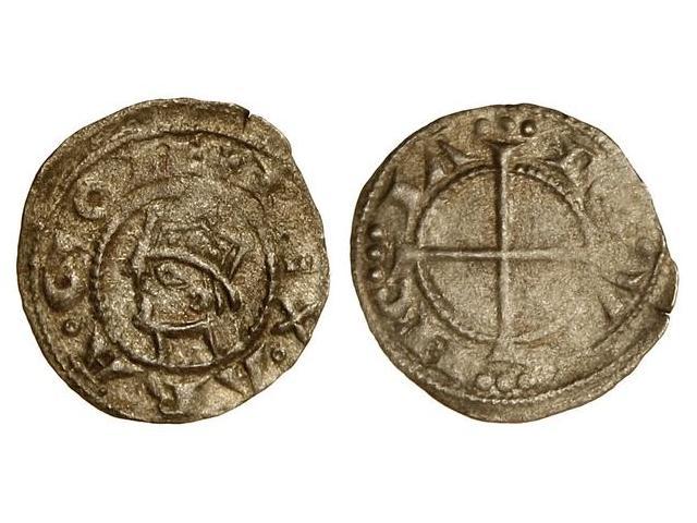 MEDIEVAL COINS: CATALONIA-ARAGÓN - Òbol. ALFONS I. COMTAT DE PROVENÇA. Anv.: REXARAGONE. Efigie coronada a izquierda. Rev.: PO-VI-NC-IA. Cruz pasante con tres puntos en los extremos. Cru.VS-171. MBC+.