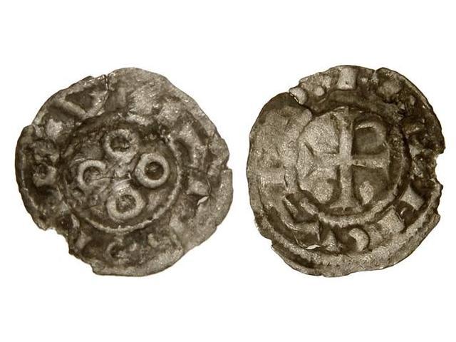 MEDIEVAL COINS: CATALONIA-ARAGÓN - Òbol. ERMENGARDA. VESCOMTAT DE NARBONA. Anv.: NARBONE CIVI. Cuatro anillos. Rev.: :ER(ME)NGARD´. Cruz interior con creciente en 2º espacio. (Grieta reparada con cola). RARA. Cru.VS-162. (MBC).