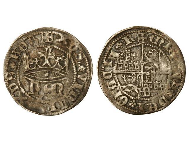 MEDIEVAL COINS: KINGDOM OF CASTILE AND LEÓN - 1/2 Real. ENRIQUE IV. SEGOVIA. Anv.: XPSVINCIT()XPSREG. HEN coronadas. Rev.: ENRICVSDEIGRACIAR. Castillos y leones cuartelados, debajo acueducto. FAB-725. (MBC).