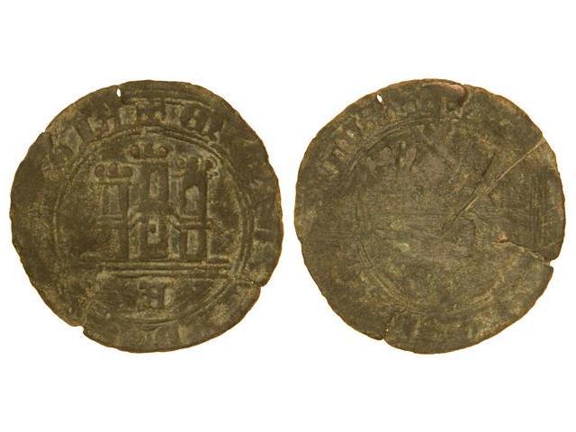 MEDIEVAL COINS: KINGDOM OF CASTILE AND LEÓN - Maravedí. ENRIQUE IV. ÁVILA. Anv.: Castillo, debajo A. (Grietas y raya en reverso). RARA. FAB-¿790.1?. MBC/BC+.