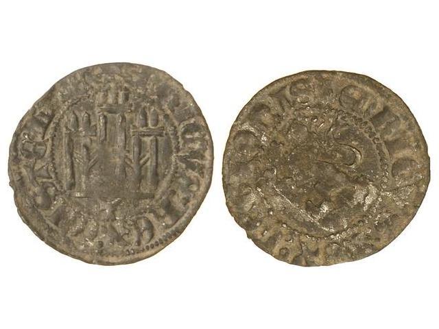 MEDIEVAL COINS: KINGDOM OF CASTILE AND LEÓN - Novén. ENRIQUE III. TOLEDO. Anv.: Castillo, debajo T entre ¿puntos?. Rev.: León rampante. FAB-610.1. MBC+.