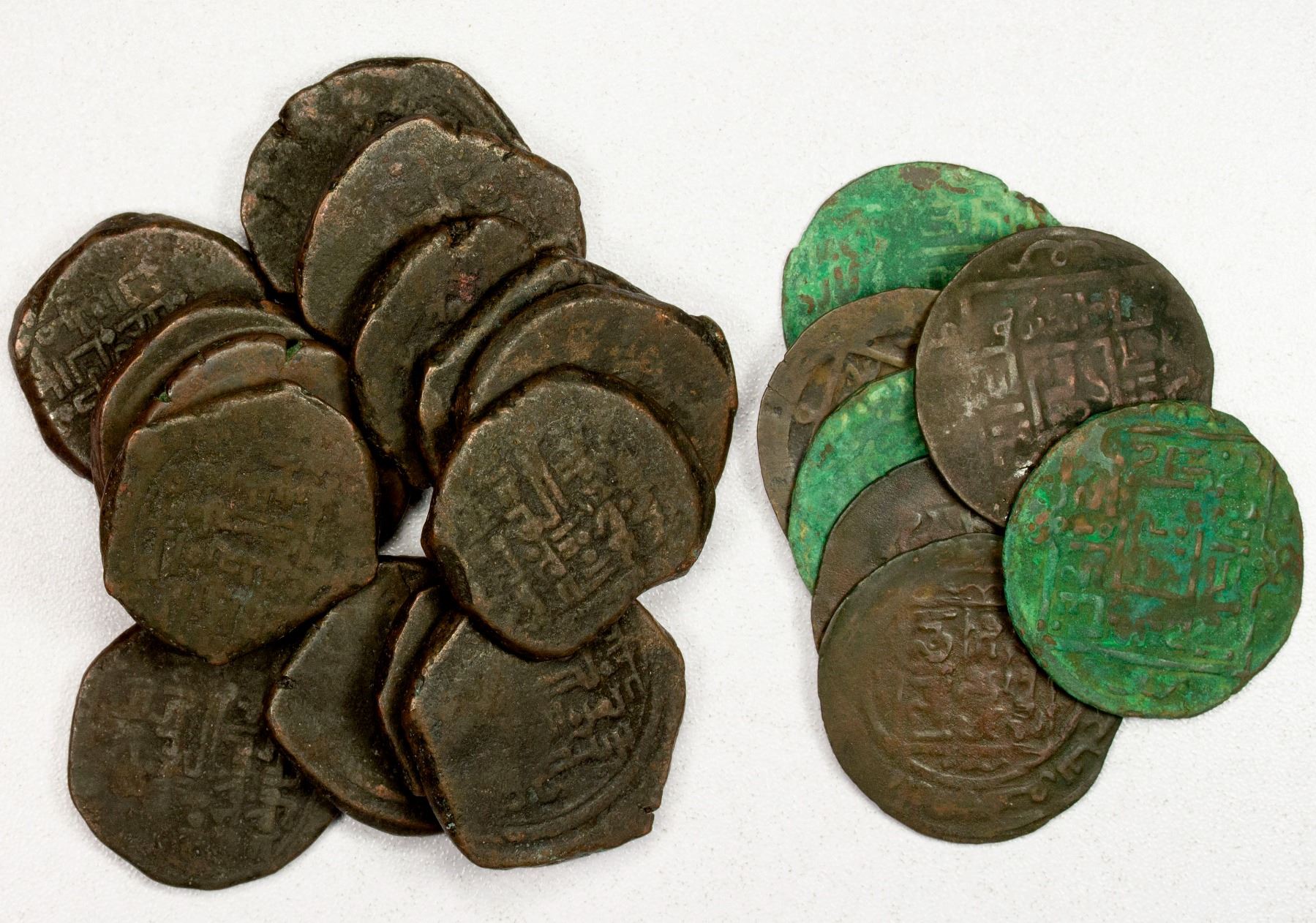 MEDIEVAL ISLAMIC: LOT of 21 coins, AMIRS OF BALKH: Abu'l-Mujahid Muhammad (al-Husayni), fl. 1220-1221, AE broad dirham, with the word shawar in the obverse center, A-1753.2 (7 coins), and PISHKINID: Mahmud b. Pishkin (Nusrat al-Din), circa 1212-1226, heavy thick AE dirham, as malik al-umara and vassal of the Ildegizid Uzbek called atabek al-a'zam, A-1916 (14 coins), crudely struck F to VF quality, retail value $400, lot of 21 coins. Balkh briefly enjoyed a moment of independence after the collapse of Khwarizmian rule in 1220 apparently between the first and second Mongol invasions. The amir is known only from his coins of the A-1753 type, as he does not seem to be mentioned directly in any of the contemporary chronicles, unless he is the 'Imad al Din (or his son) mentioned by 'Ata Malik Juvayni as governor of Balkh. The meaning of the word or name tentatively interpreted as shawar on type A-1753.2 remains unknown.The Pishkinid were a minor dynasty at Ahar in Adharbayjan, at first vassals of the Ildegizids, later of the Khwarizmshahs. Some early scholars called them either the "Nushtekinids" or the "Maliks of Ahar". Ahar, about 50 miles northeast of Tabriz, was known for its copper mines, still in operation as the Soungoun Ahar mint.
