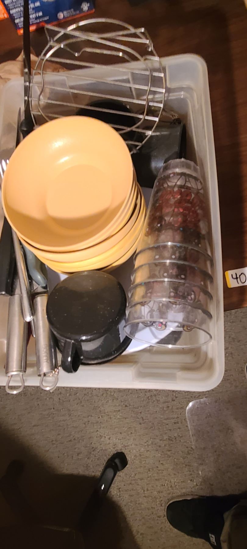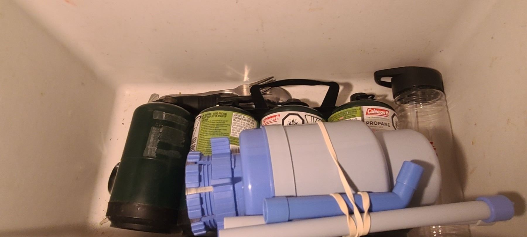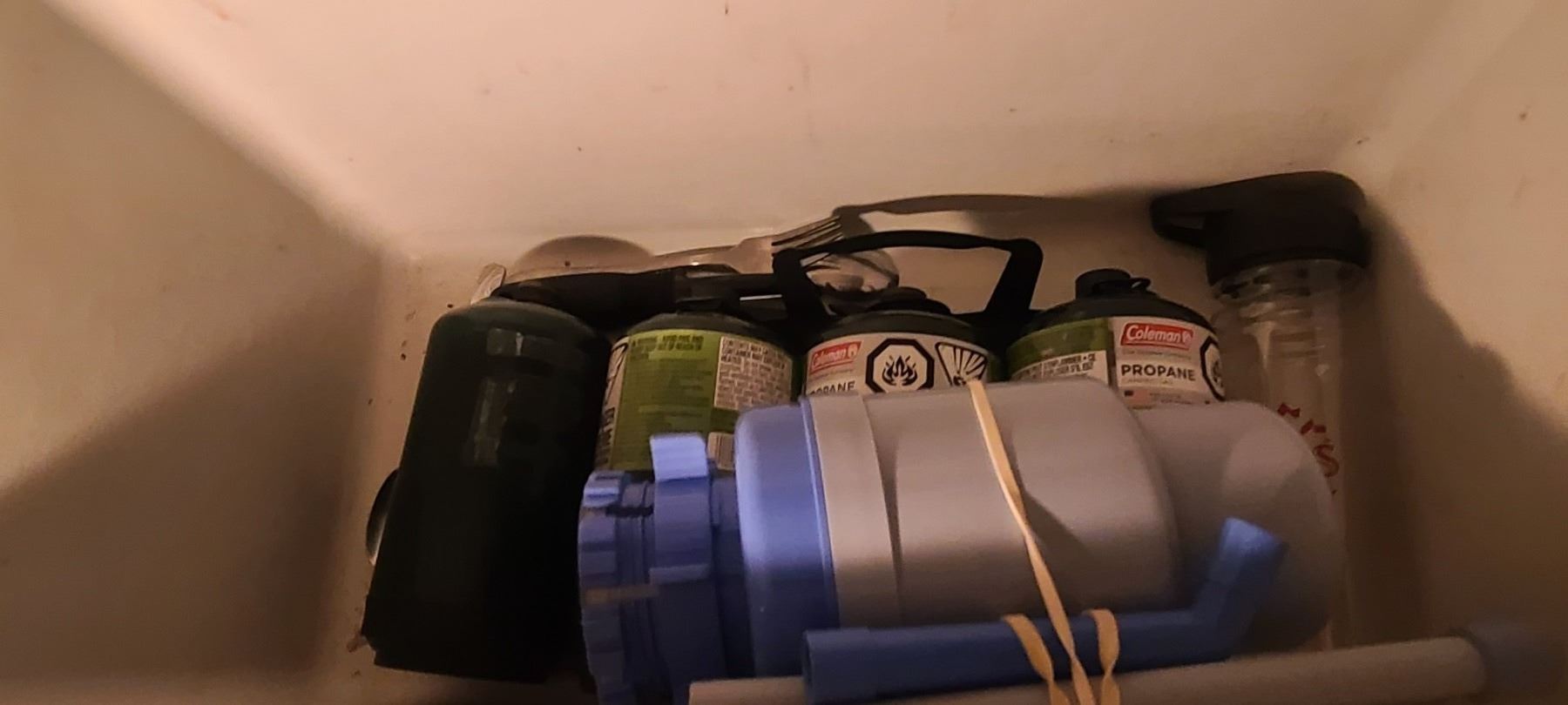 MEDIUM COLEMAN COOLER C/W WITH PROPANE BOTTLES AND CAMPING SUPPLIES