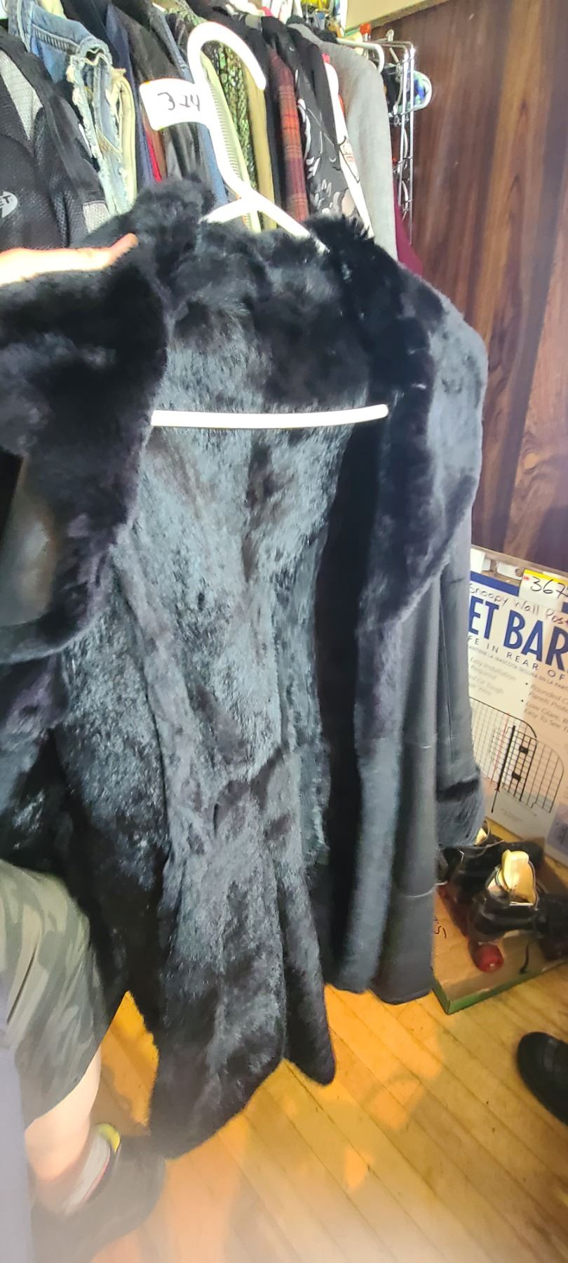 MEDIUM LADIES FUR AND LEATHER LONG COAT