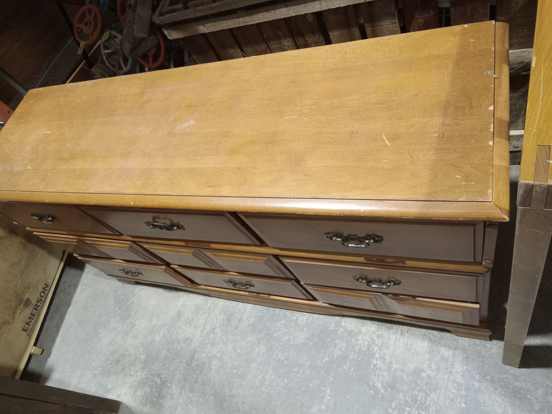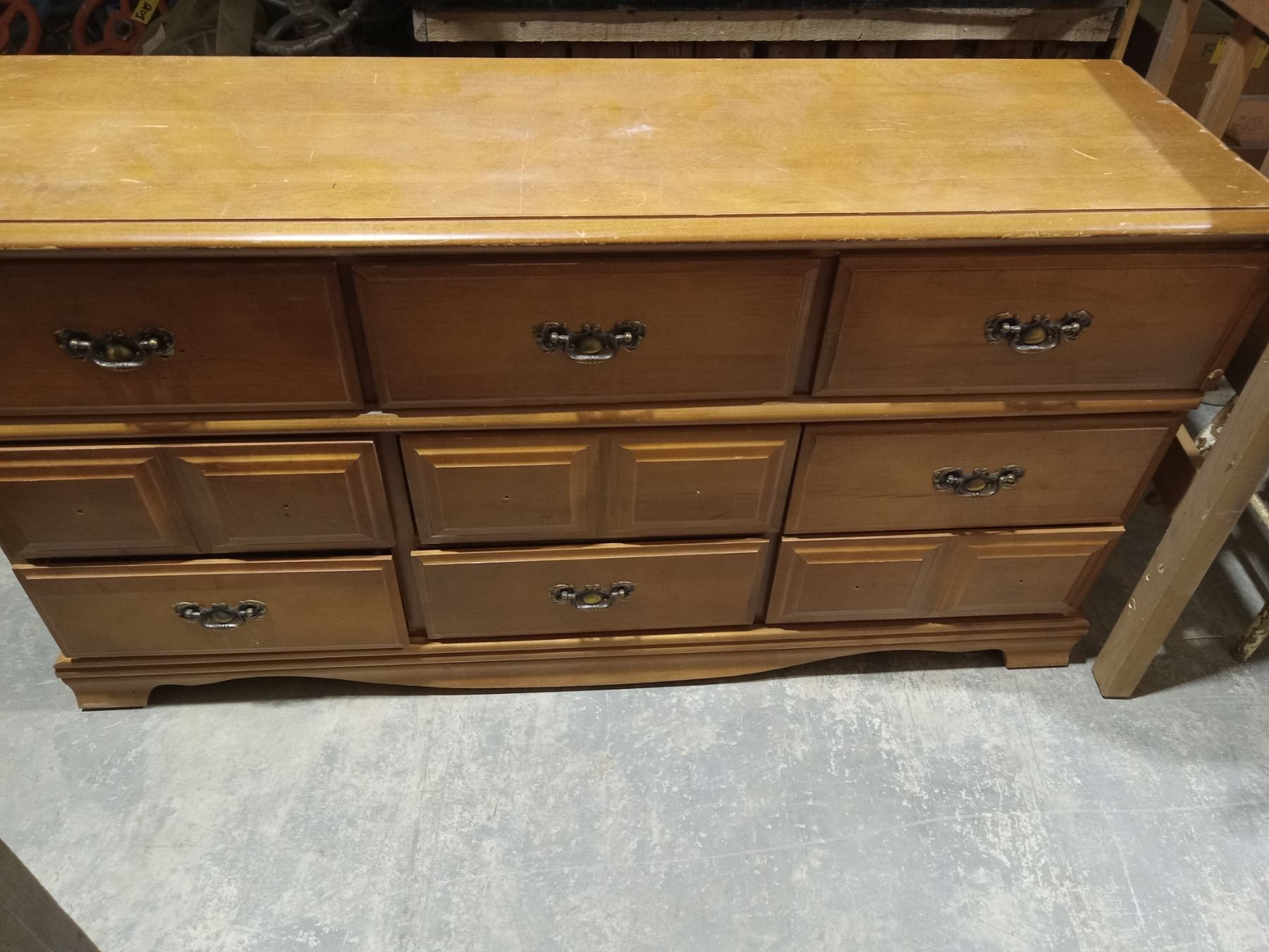MEDIUM WALNUT FINISH TRIPLE DRESSER & DOUBLE HEADBOARD(BOTH WOOD)