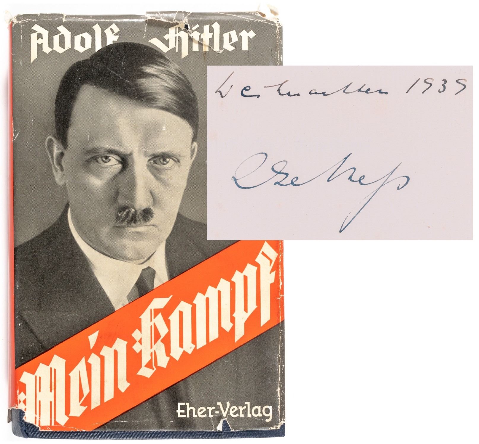 (1900-1995) Wife of Rudolf Hess and post war supporter of the 'Stille Hilfe' (Silent Help), a relief organization for fugitive Nazis. Her copy of Adolf Hitler's 'Mein Kampf', 1939 edition, signed by Ilse Hess on front flyleaf page 'Christmas 1939 Ilse Hess', 7.5 x 5 inches. In original dustjacket, minor tears.. Provenance: From the estate of Ilse Hess.
