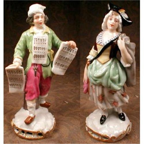 Pair of great Meissen-style character figures. She is a