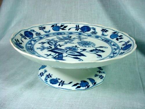 MEISSEN OLDEST MARK PEDESTEL DISH IN THE ONION PATTERN. 3" X 9"
