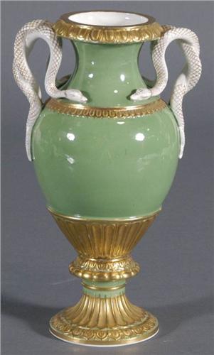 MEISSEN URN, with snake handles, 11" high,CONDITION REPORT: Excellent. PACKING AND SHIPPING excl. insurance w/i Contintental U.S. $30