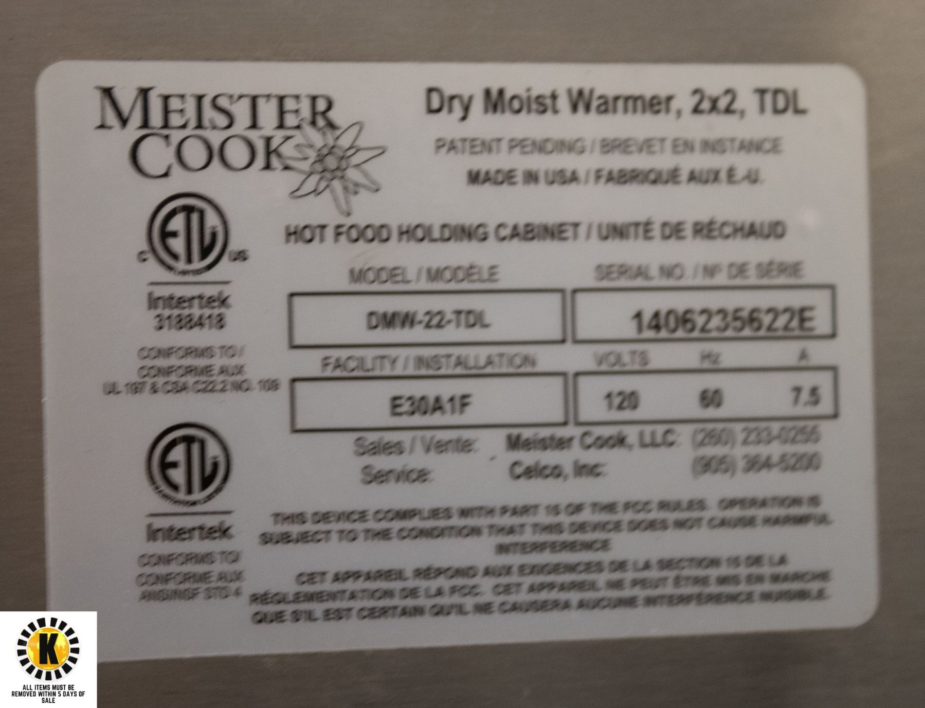 -All items need to be picked up within 5 days of purchase.