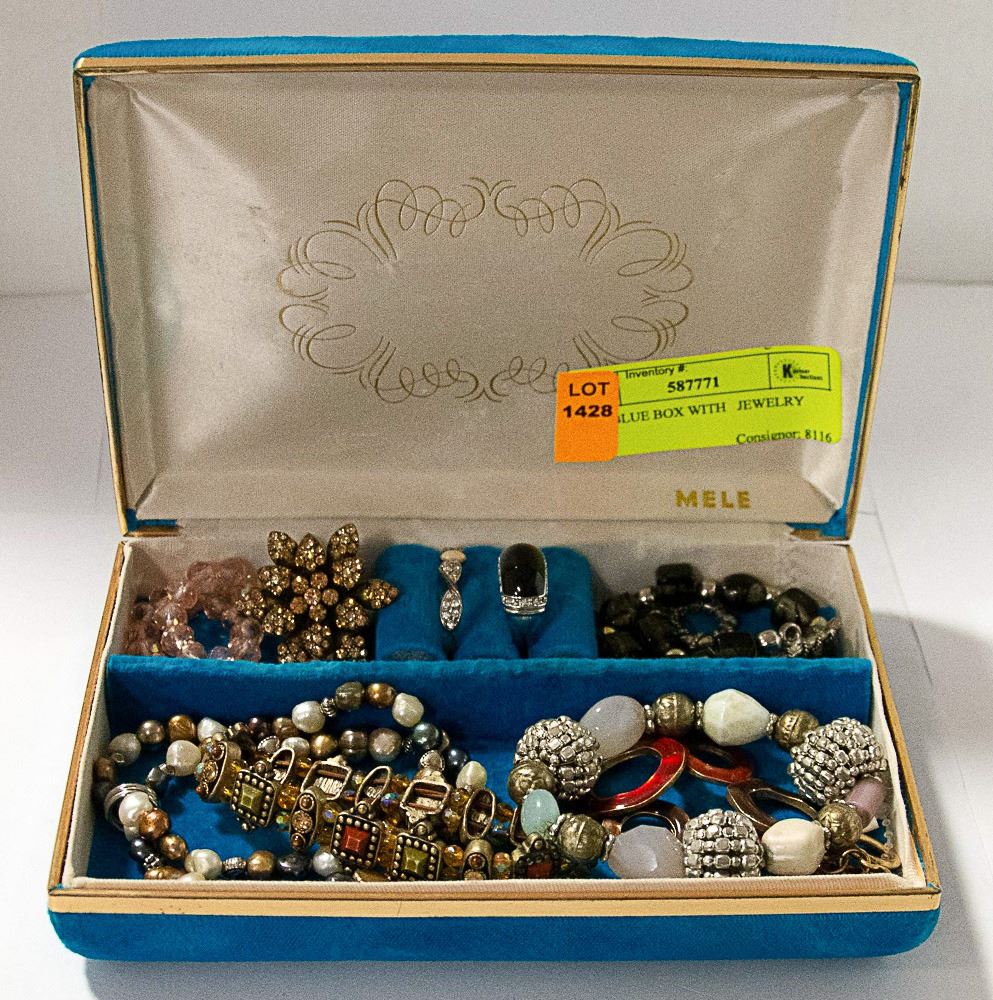 MELE BLUE BOX WITH ASSORTED JEWELRY
