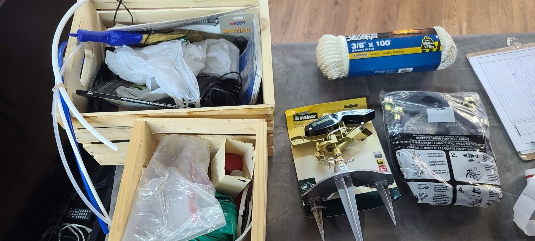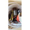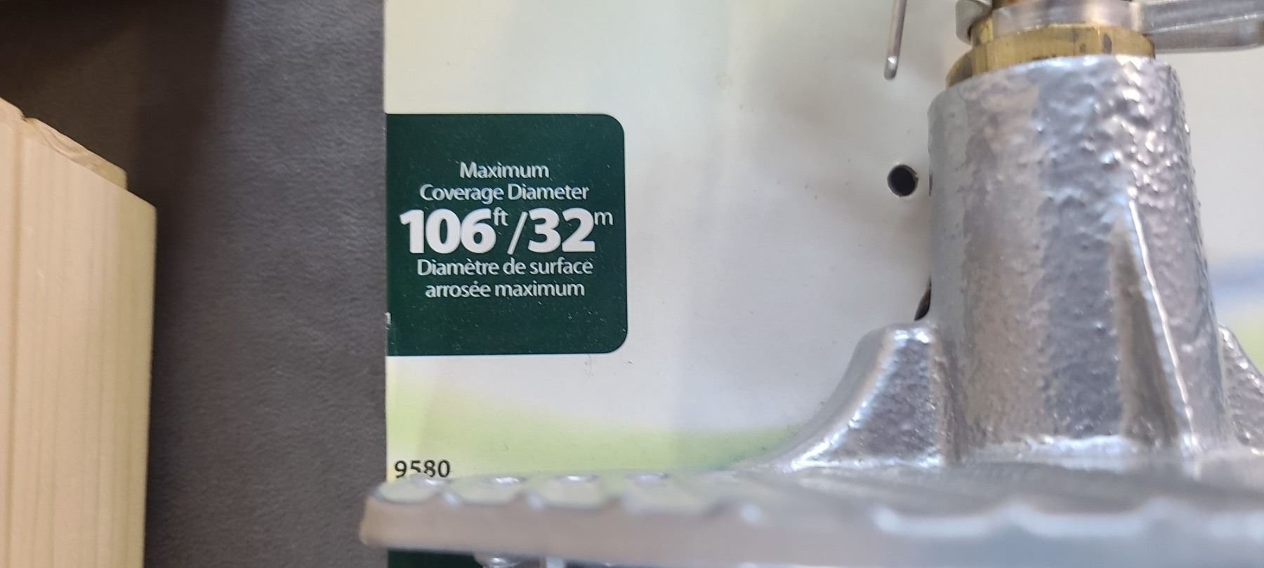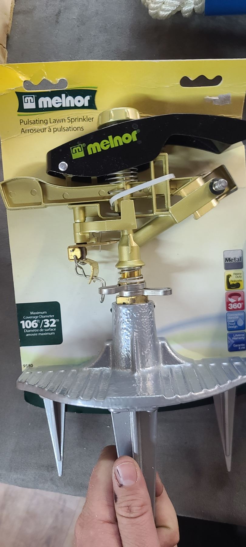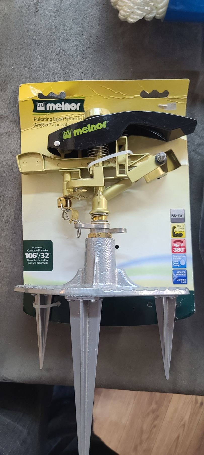 MELNOR 106' -32M COVERAGE GARDEN SPRINKLER HEAD , 100' 3/8" ROPE AND TWO MISC BOXES