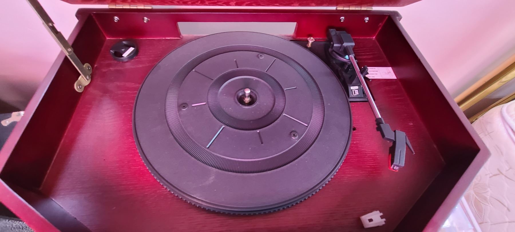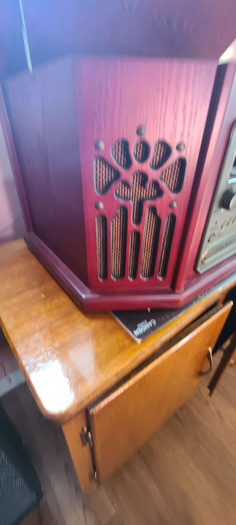 MEMDREX TABLETOP RADIO/RECORD/CD PLAYER AND RECORD CABINET