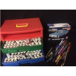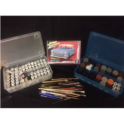 MODEL PAINT, BRUSHES, MODEL TOY CAR LOT