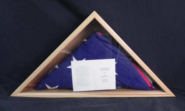MEMORIAL U.S. FLAG, ENCASED, FOR A WWII CBI HUMP PILOT WOOD CASE WITH GLASS FRONT. 26 1/2 X 13 1/2 X 4"