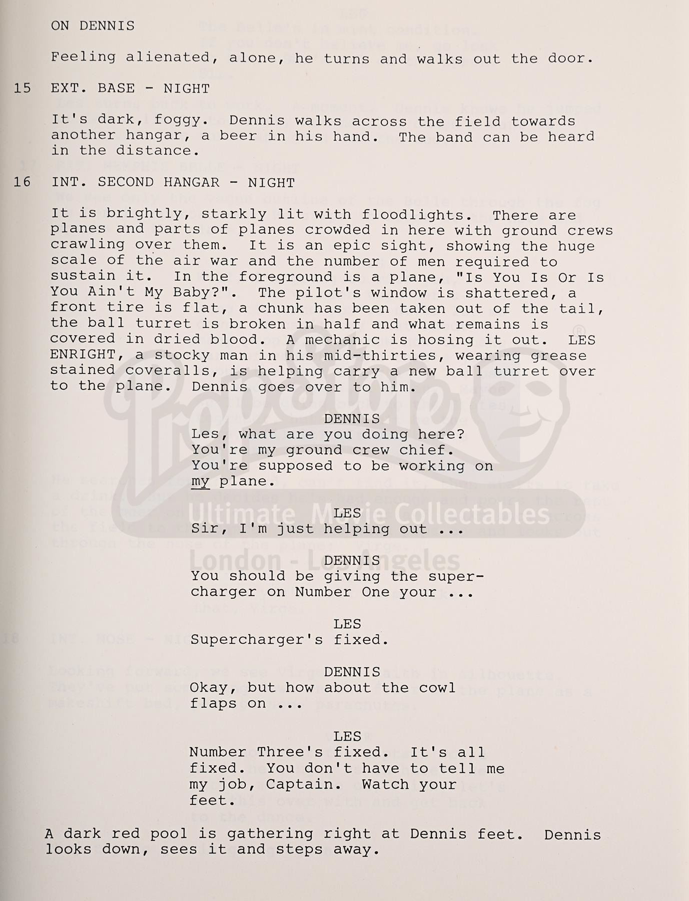 Captain Dennis Dearborn's (Matthew Modine) cap and a script from Michael Caton-Jones' World War II film Memphis Belle. Dearborn wore his cap throughout the film as he led his bomber crew.