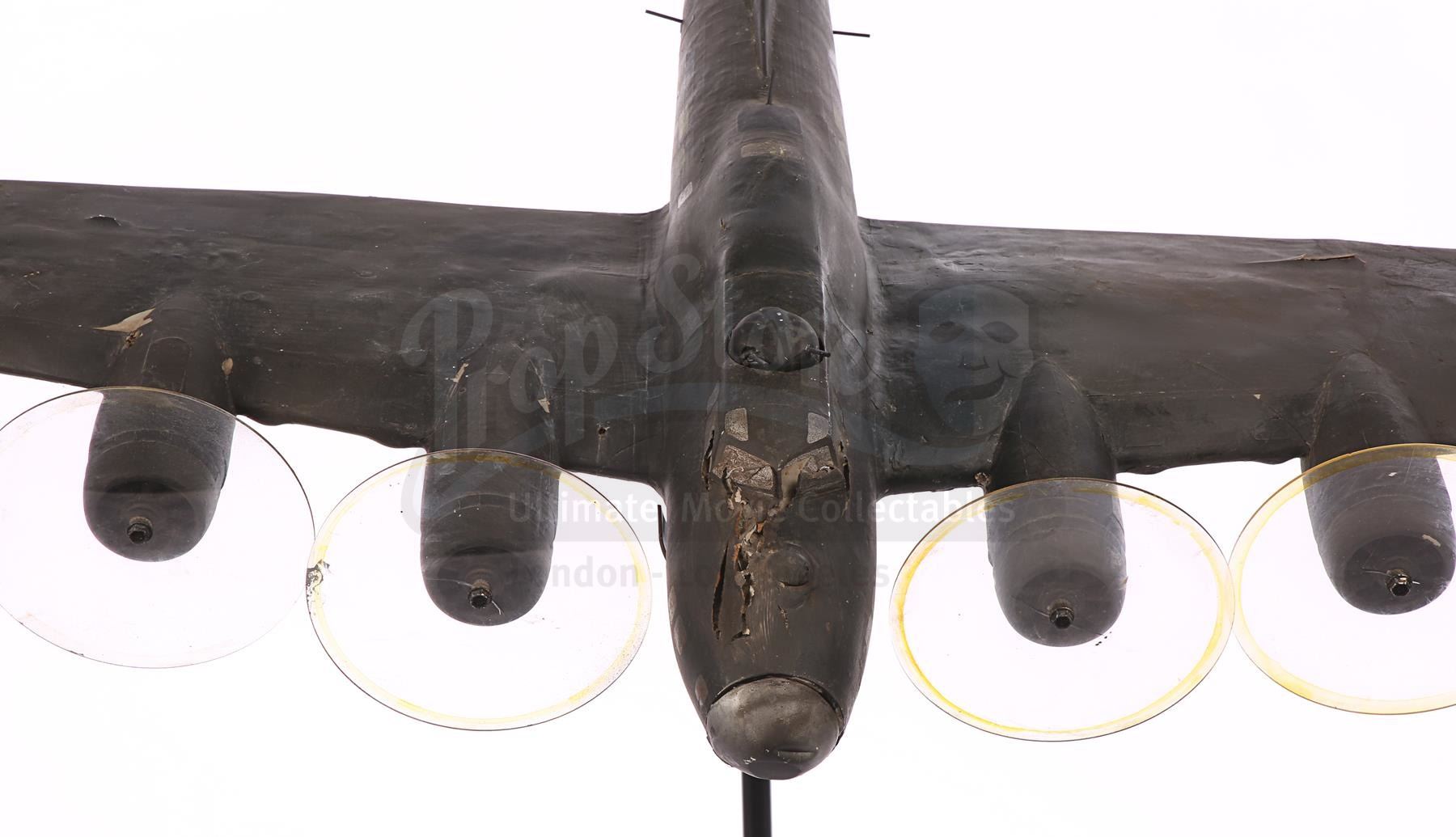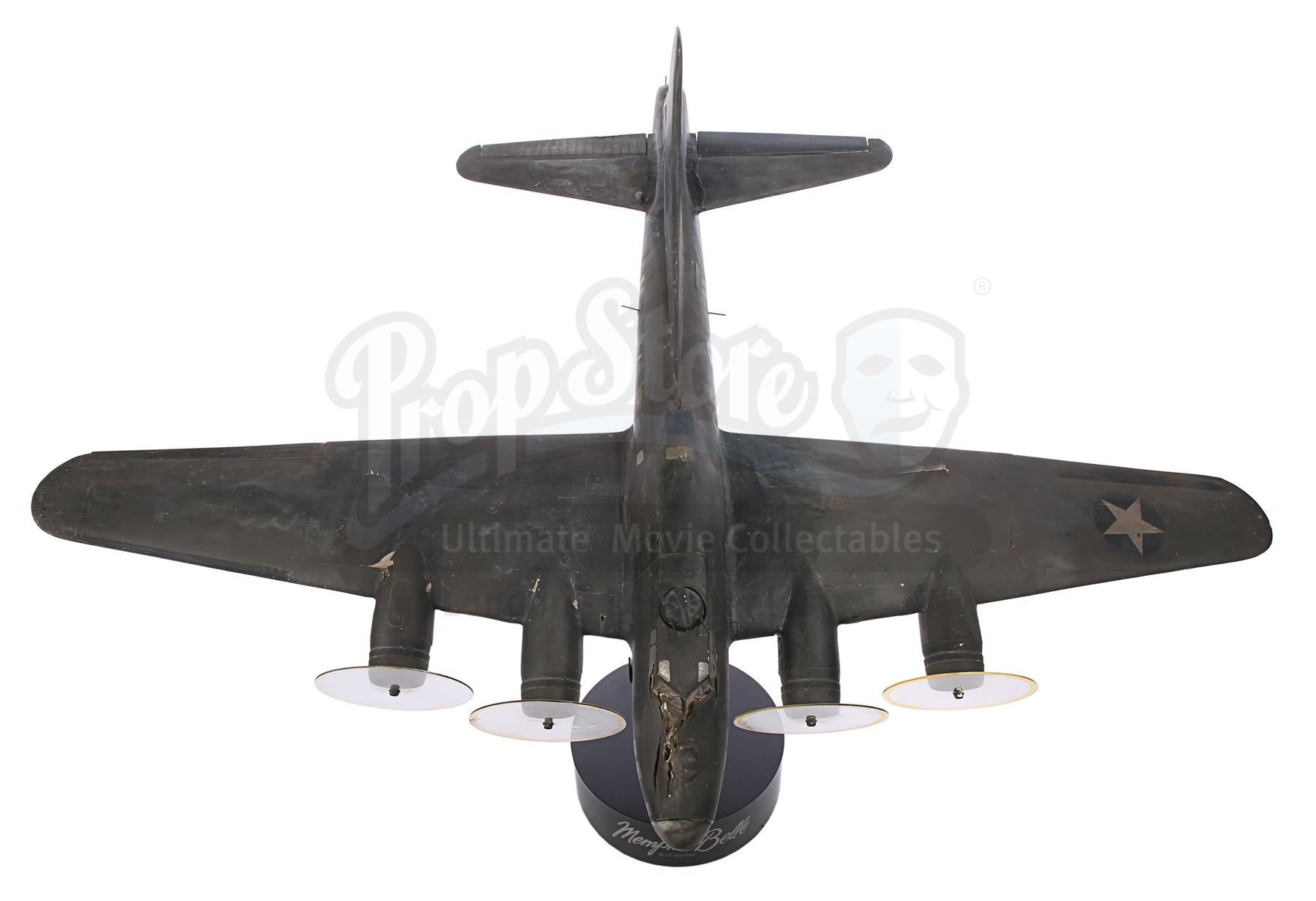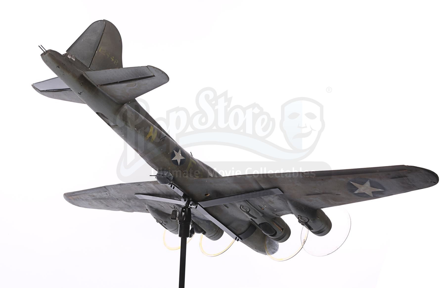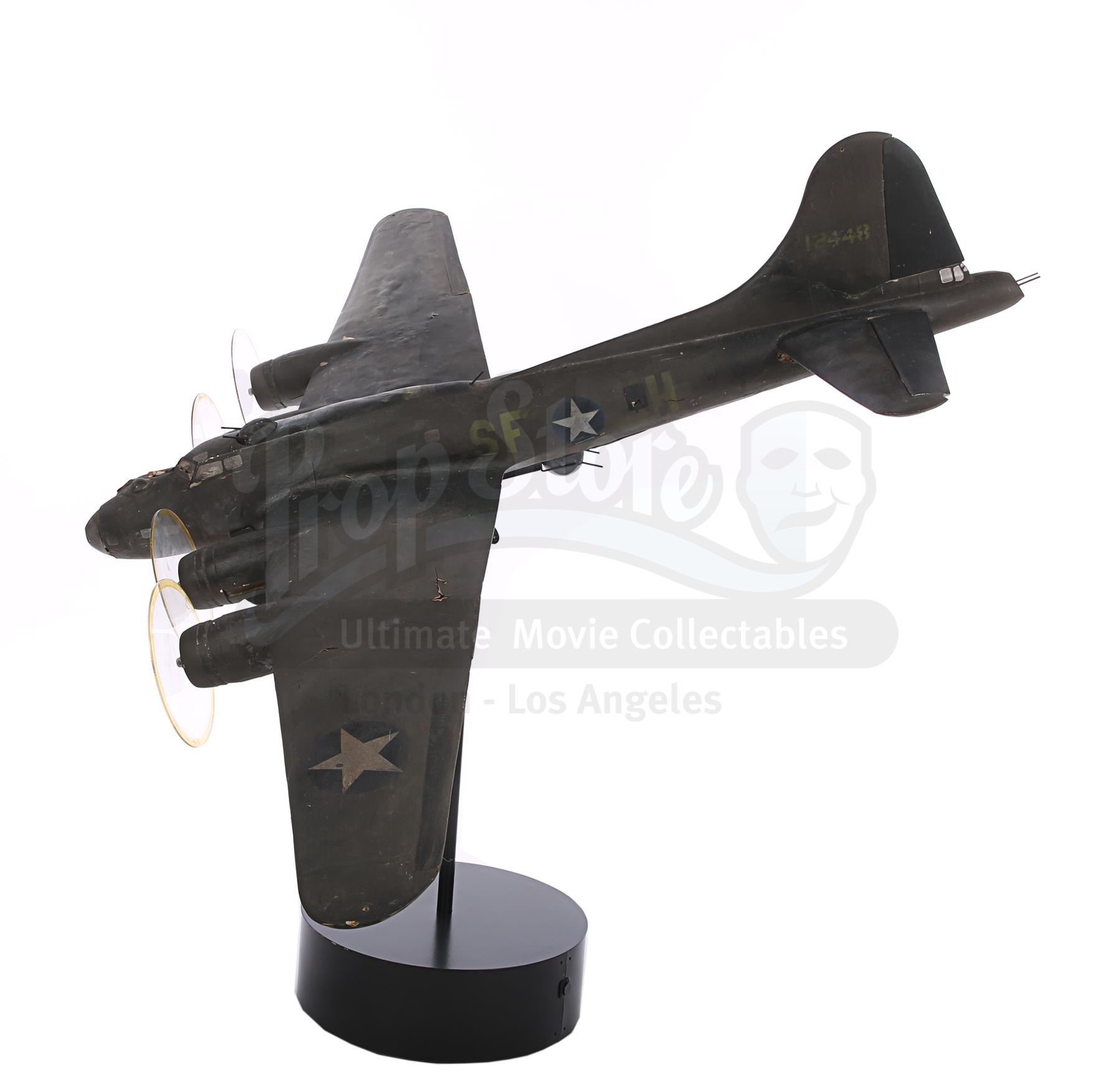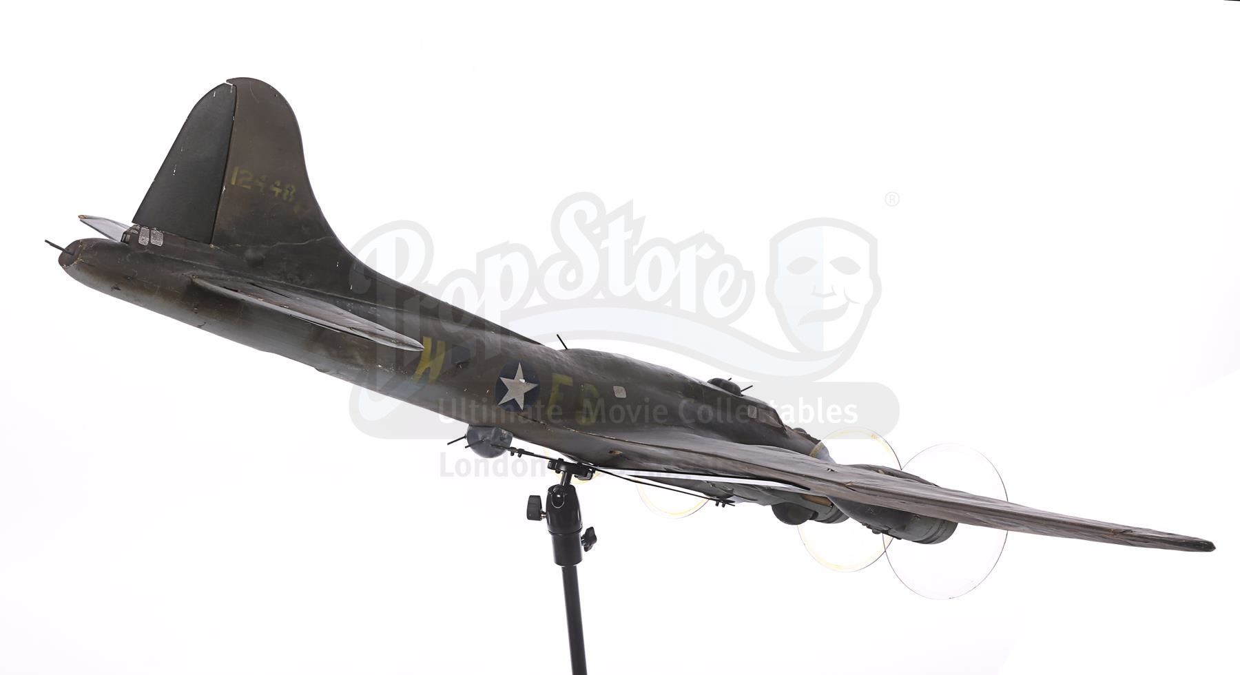 A model miniature flak-hit B-17 bomber from Michael Caton-Jones' World War II drama Memphis Belle. While real B-17s were used for filming in-flight close-ups, model miniatures were created for wide shots showing bomber squadrons passing over Nazi-occupied Europe in formation.