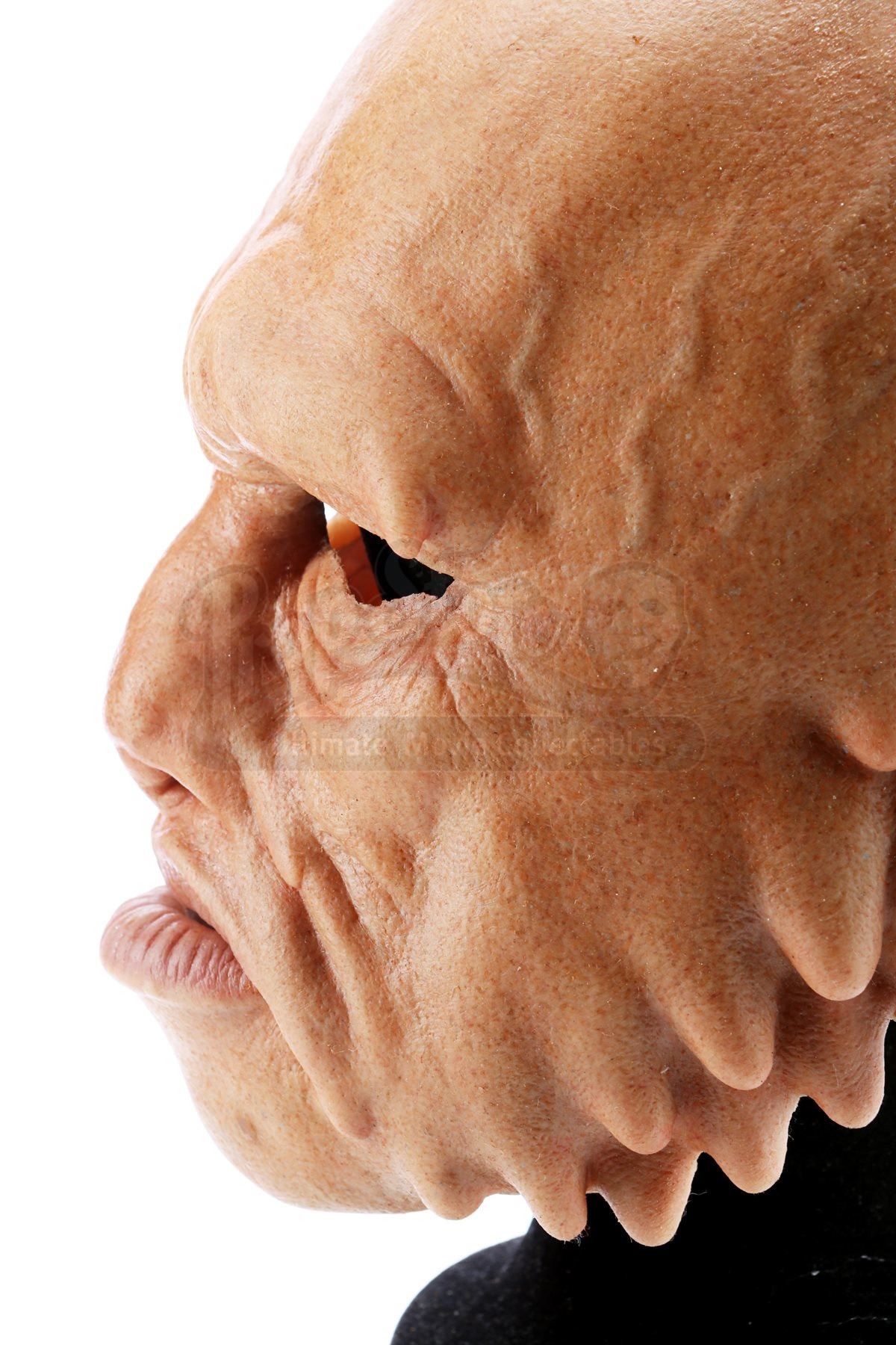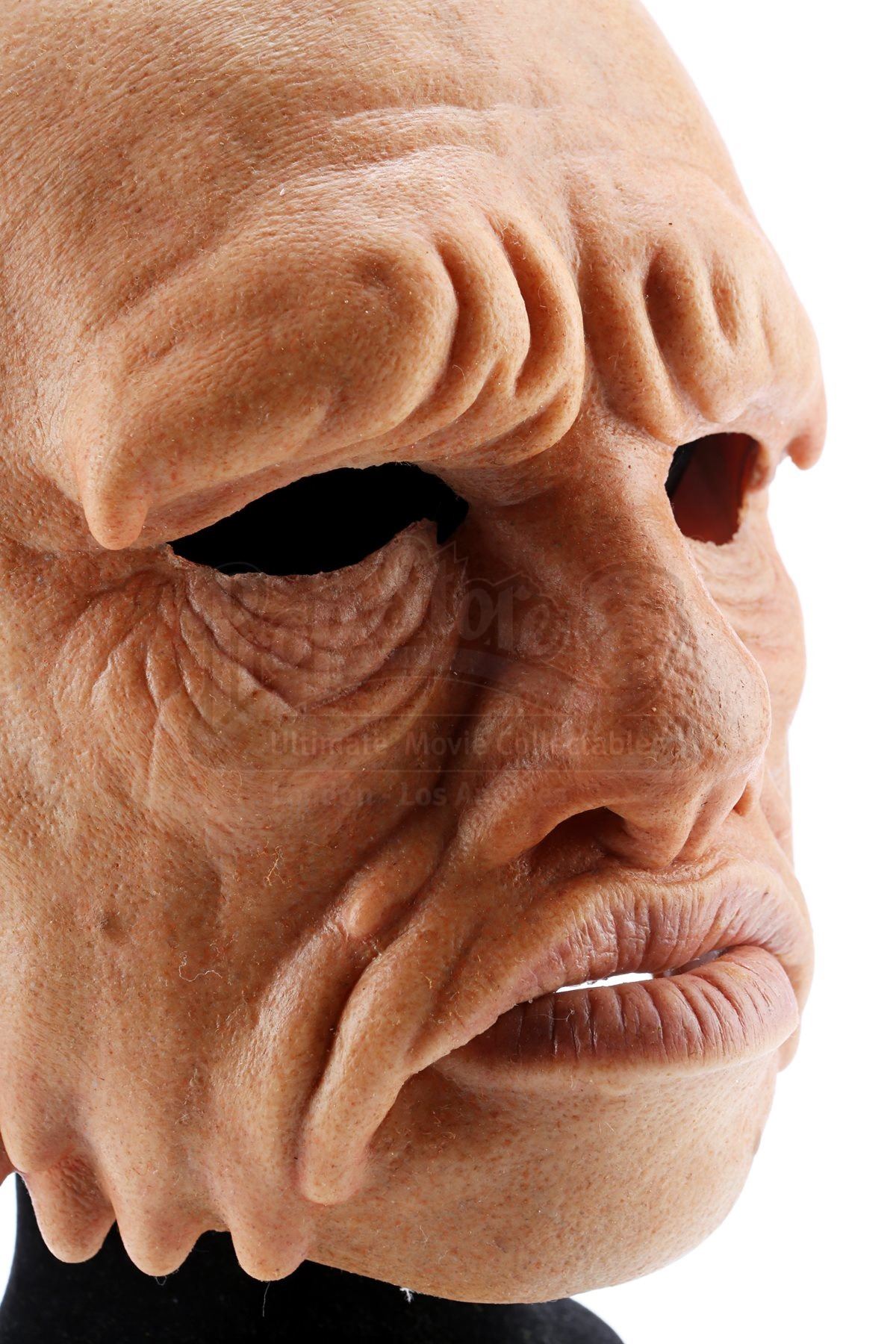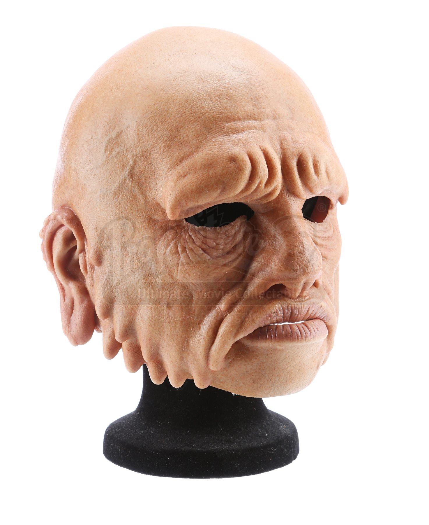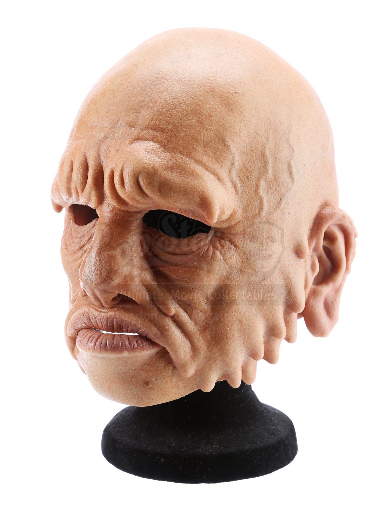 Designed by legendary make-up artist Rick Baker, this humanoid alien mask is made of silicone, and features skin that appears to be melting, with numerous wrinkles and sagging areas of flesh. The mask has holes at the eyes, nose, mouth and ears for the actor’s comfort. Showing minor wear due to production use, the mask remains in very fine condition. Dimensions: 25.5 cm x 25.5 cm x 20 cm (10” x 10” x 8”)
