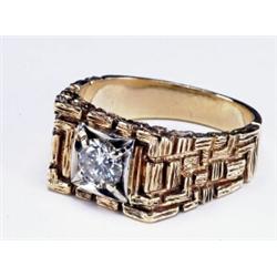 MEN'S 10K YELLOW GOLD SOLITAIRE RING, set with a brilliant cut diamond (approx. 0.97ct.) within a sculpted mount, 13.5 grams