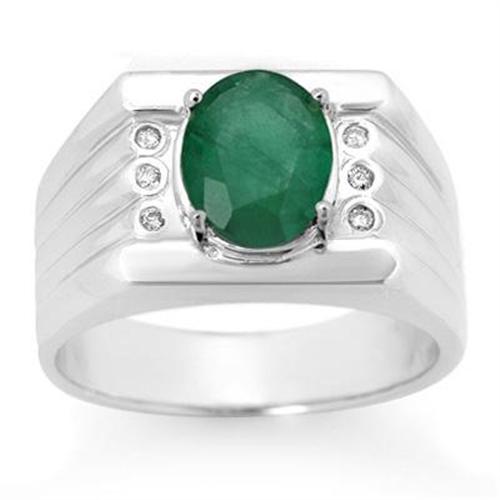 MEN'S 2.06 ctw DIAMOND & EMERALD RING IN 10KT WHITE GOLD