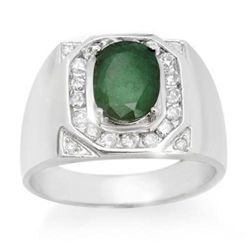 MEN'S 2.60 ctw DIAMOND & EMERALD RING 14KT WHITE GOLD