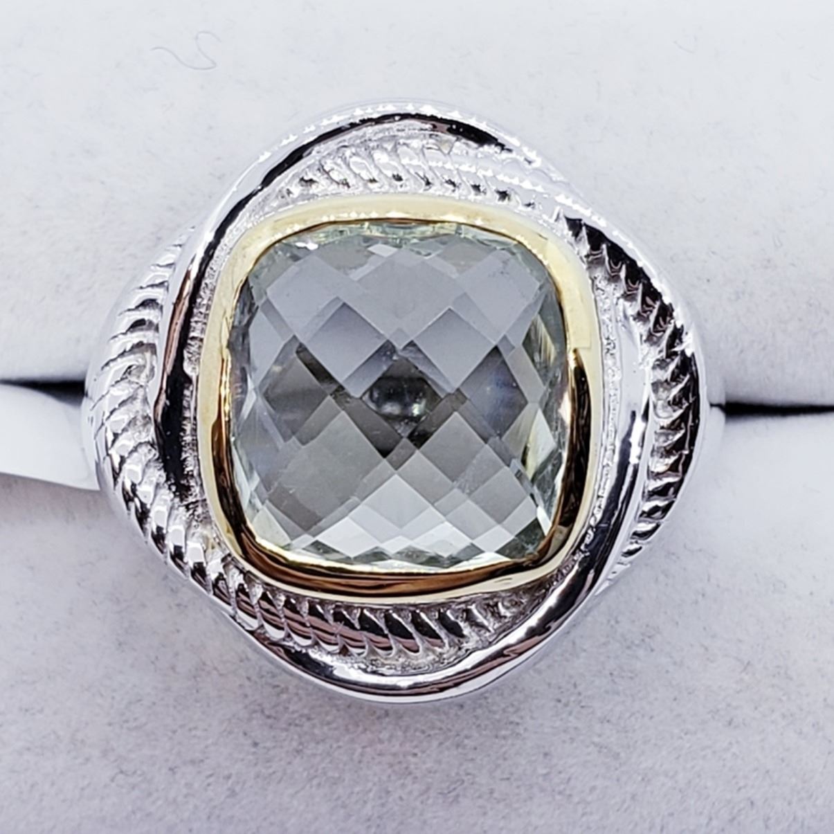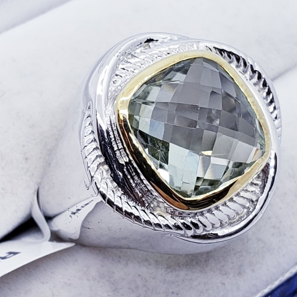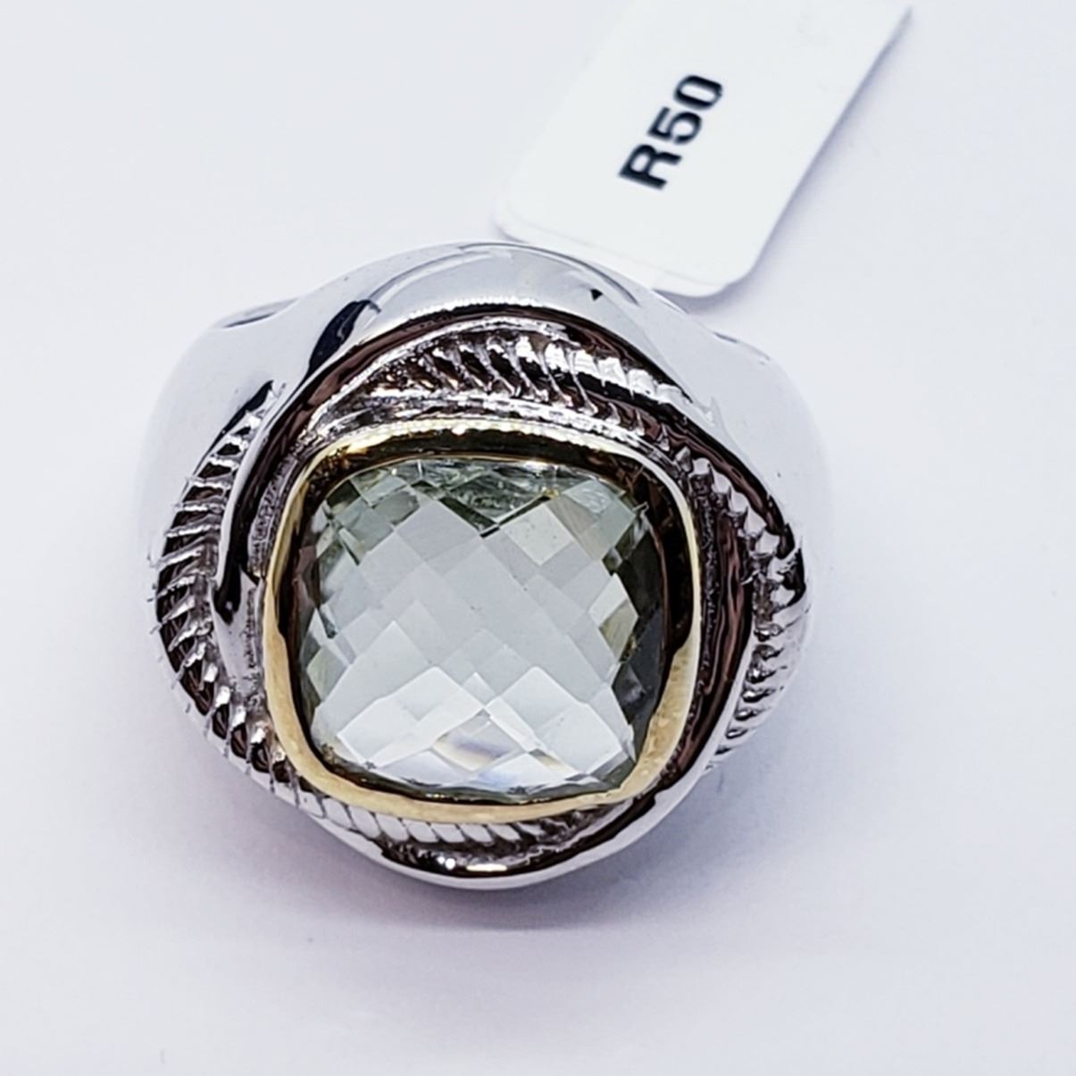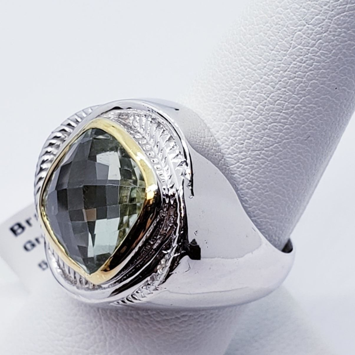 BRASS MEN'S GREEN AMETHYST (5.8ct) RING (WEIGHT 9g). SUGGEST RETAIL VALUE $200 ESTIMATE $150 - $200.