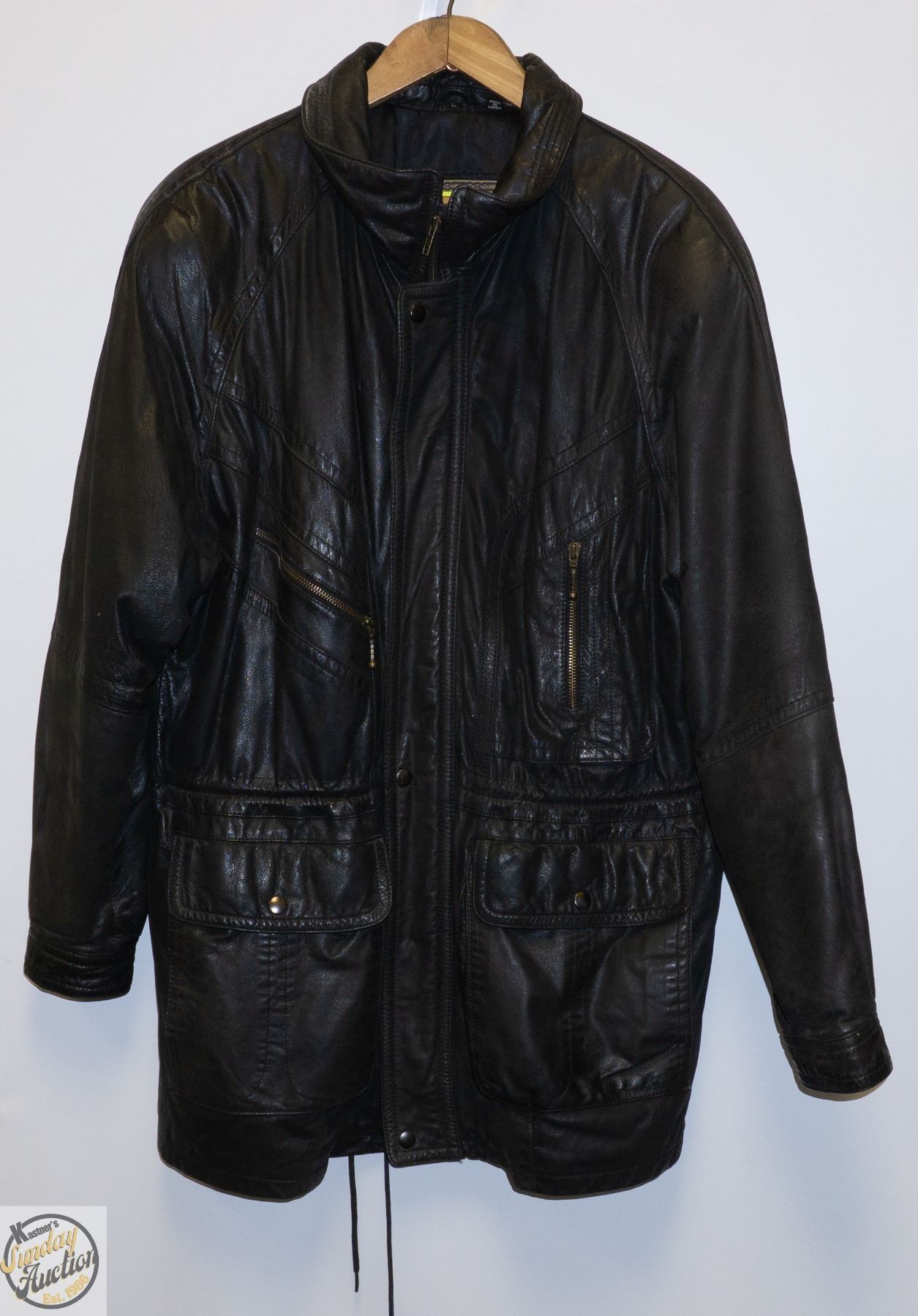MEN'S L-XL BLACK 4-POCKETS LEATHER JACKET, ZIPPER