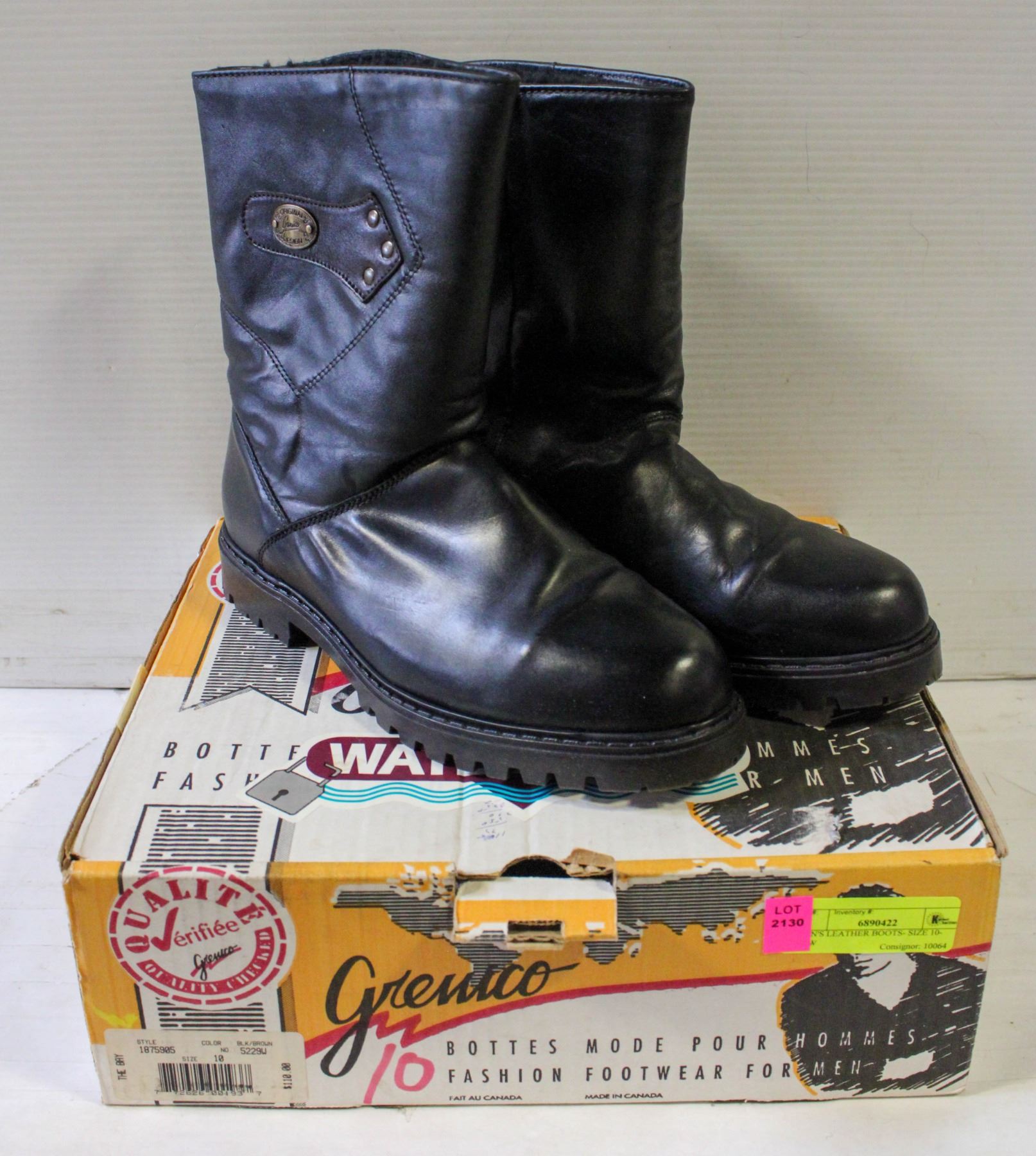 MEN'S LEATHER BOOTS- SIZE 10- NEW