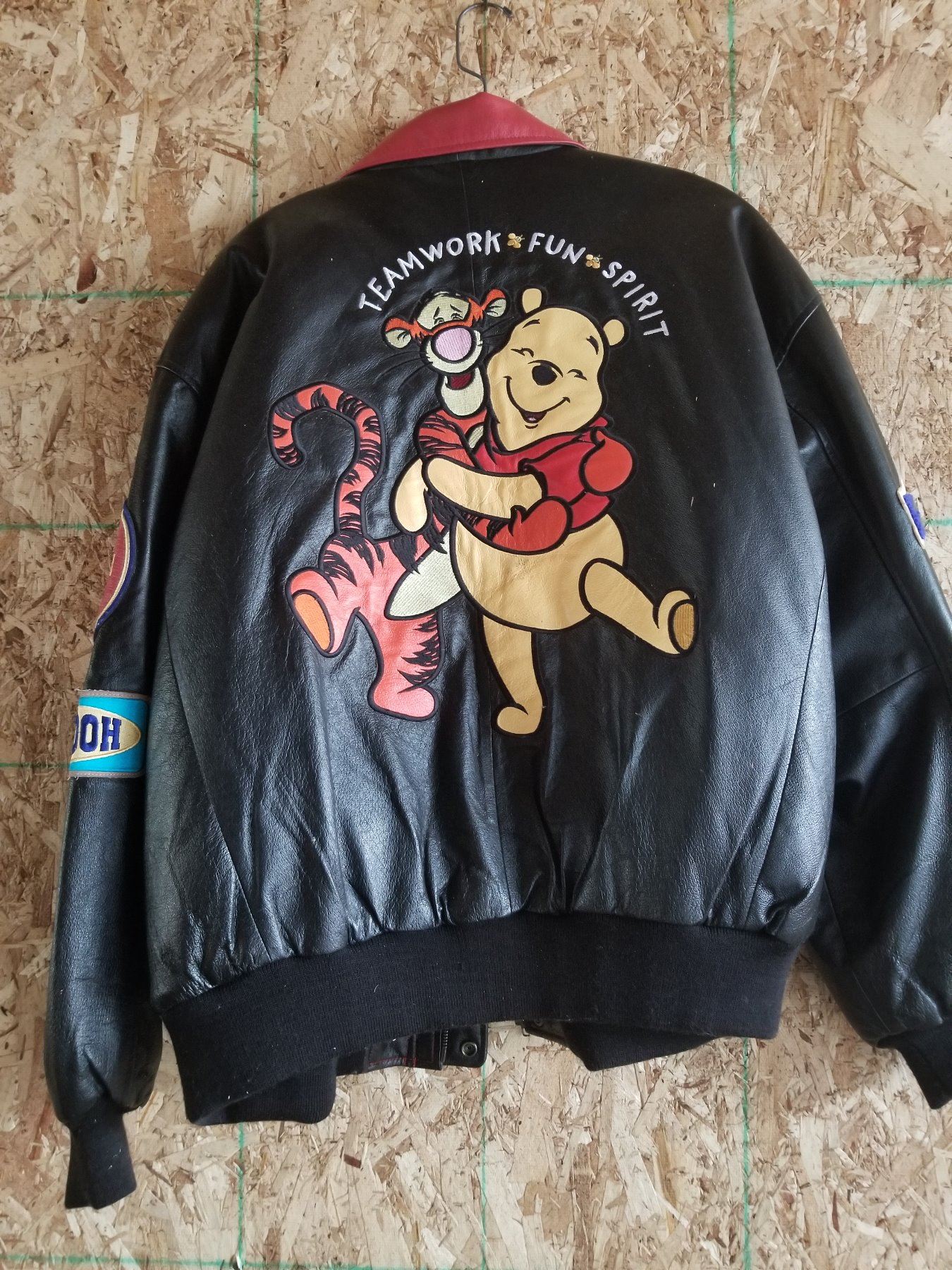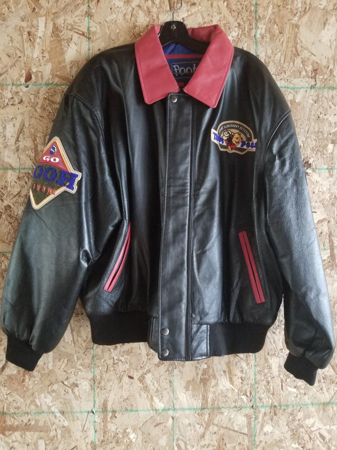 MEN'S RETRO LEATHER JACKET (WINNIE THE POOH THEMED) *UNUSED, MEN'S XL*