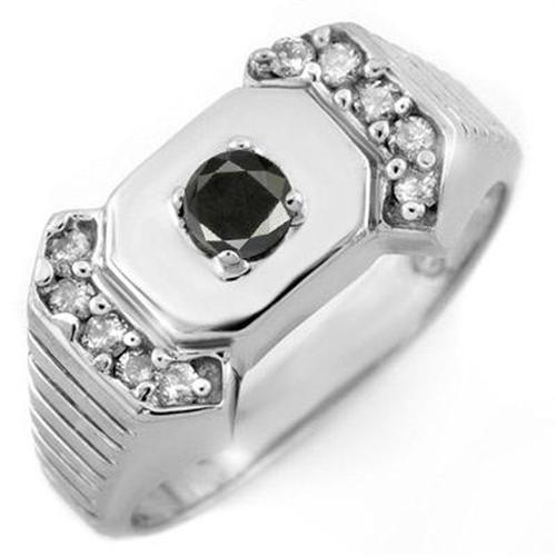 MEN'S WHITE AND BLACK DIAMOND RING IN 10K WHITE GOLD AT 0.58 ctw