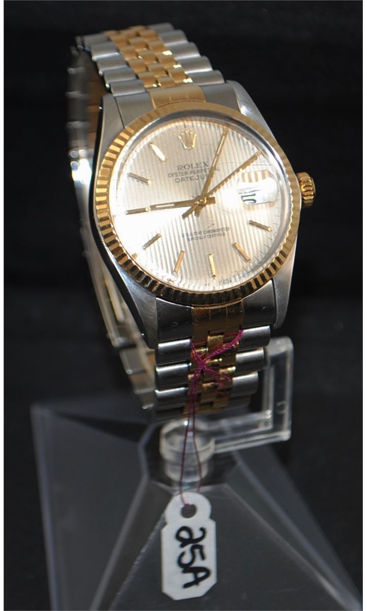 MEN'S ROLEX DATEJUST 18K/SS WITH JUBILEE BAND 18K & STAINLESS STEEL. QUICK SET, TAPESTRY DIAL. REPLACEMENT COST IS $12,000.00. AND COMES WITH THE APPRAISAL FOR INSURANCE PURPOSES.