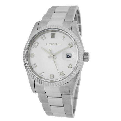 Eminently masculine, this Le Chateau watch harkens back to a nostalgic time with its classically styled features. The precisely constructed timepiece features a solid stainless case and band, genuine Citizen quartz movement, date display, deployment buckle and screw-down crown. <BR><BR>Watch is water resistant to thirty meters.<BR><BR> Includes a three year, manufacturer's warranty. (This is a brand new item.)<p>