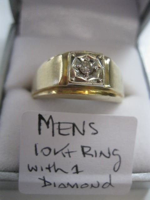 MENS 10kt RING W/1 DIAMOND