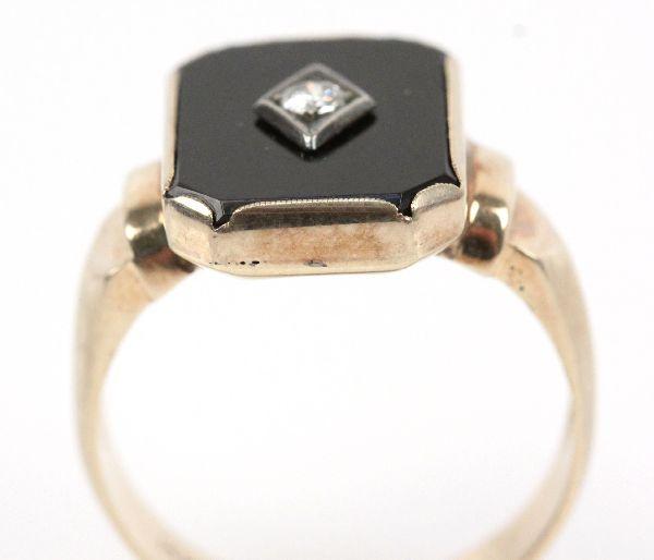 16x12mm black onyx set with an approx. 0.125ct round full cut diamond. Size: 10 Weight: 5.8 g Condition: Very good