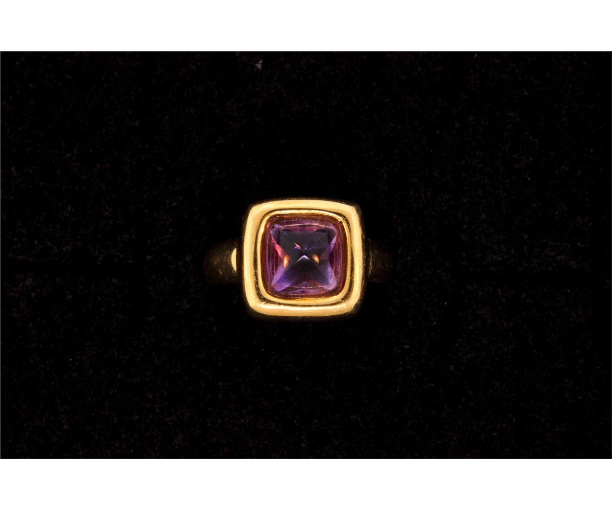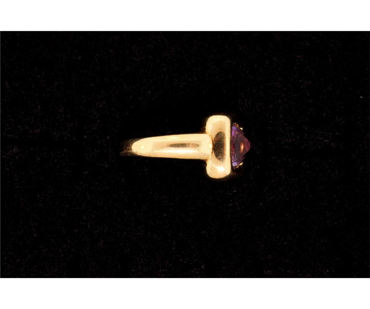 MENS 18KY RING WITH PURPLE STONE, SIZE 7