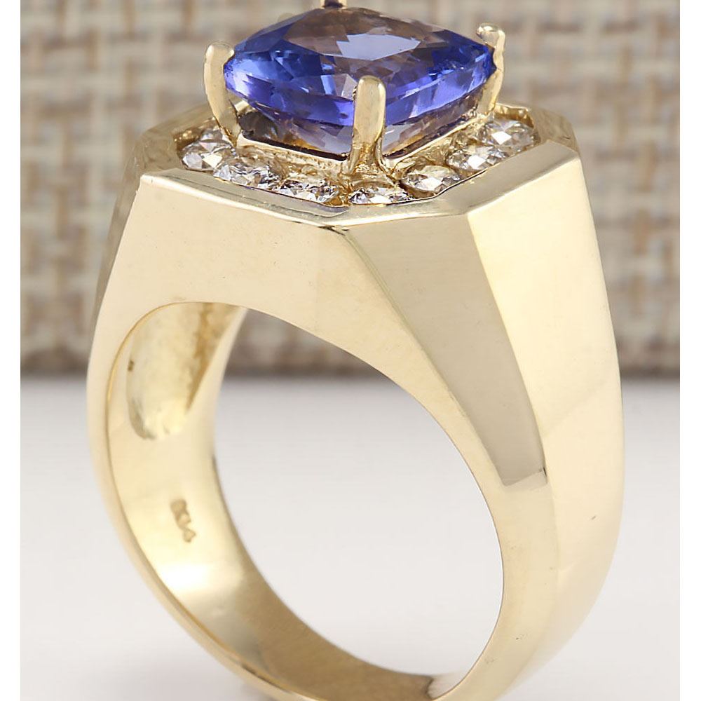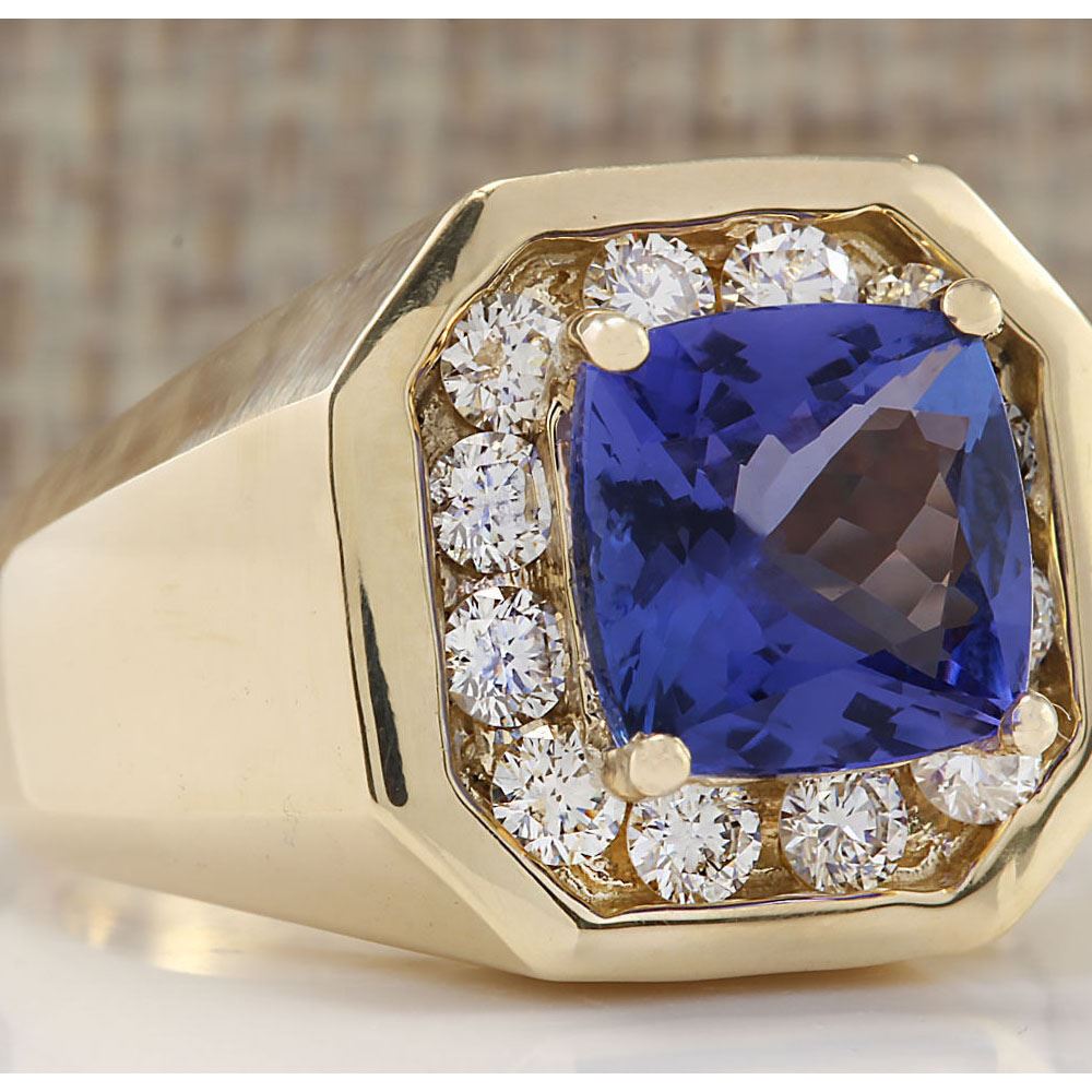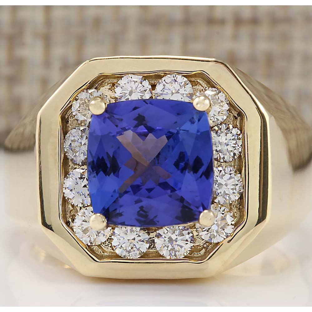 MENS 4.04 CTW Natural Blue Tanzanite And Diamond Ring 14k Solid Yellow Gold