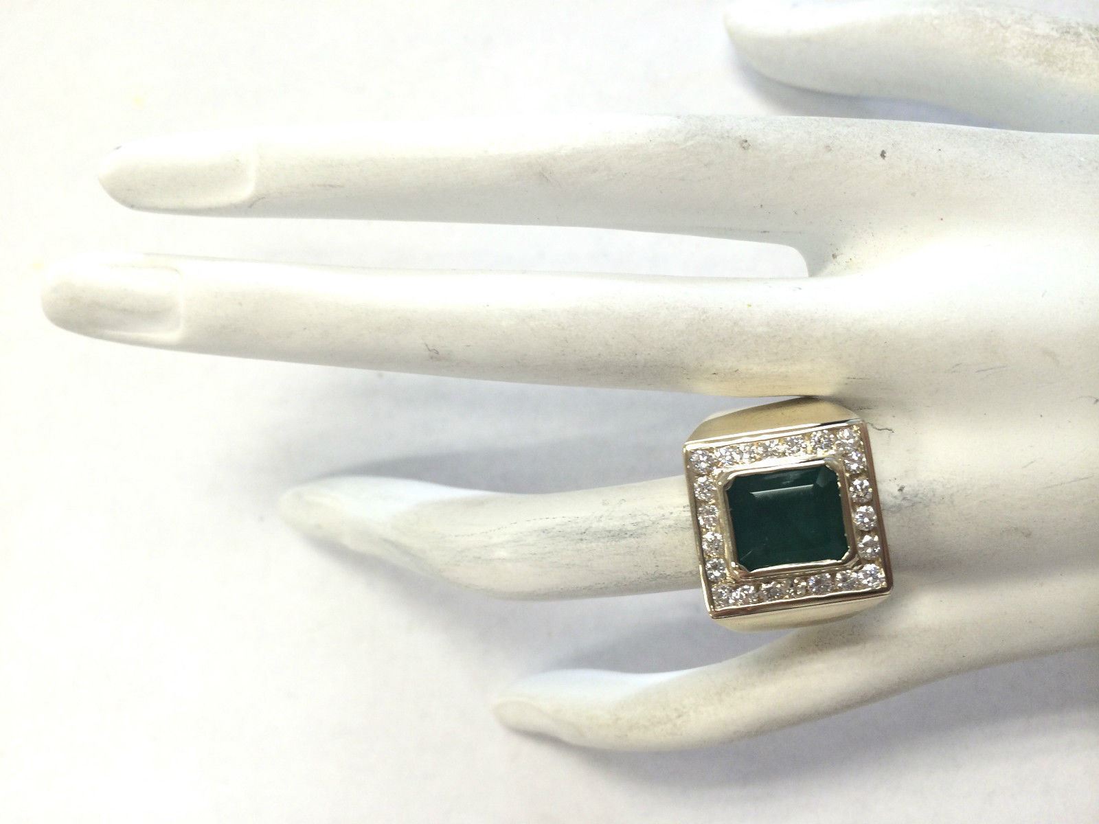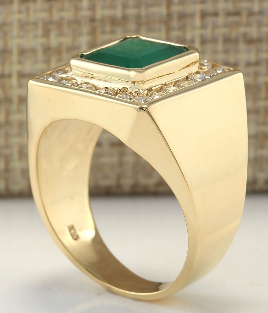 MENS 5.00 CTW Natural Mens Emerald And Diamond Ring In 14K Yellow Gold