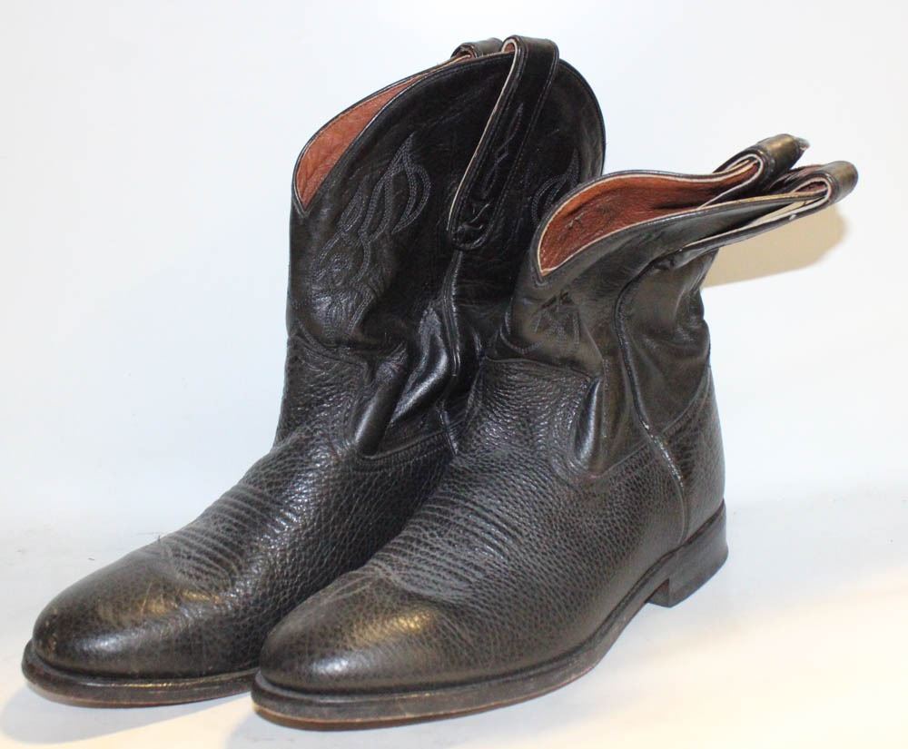 MENS 9 BLACK LEATHER COWBOY BOOTS