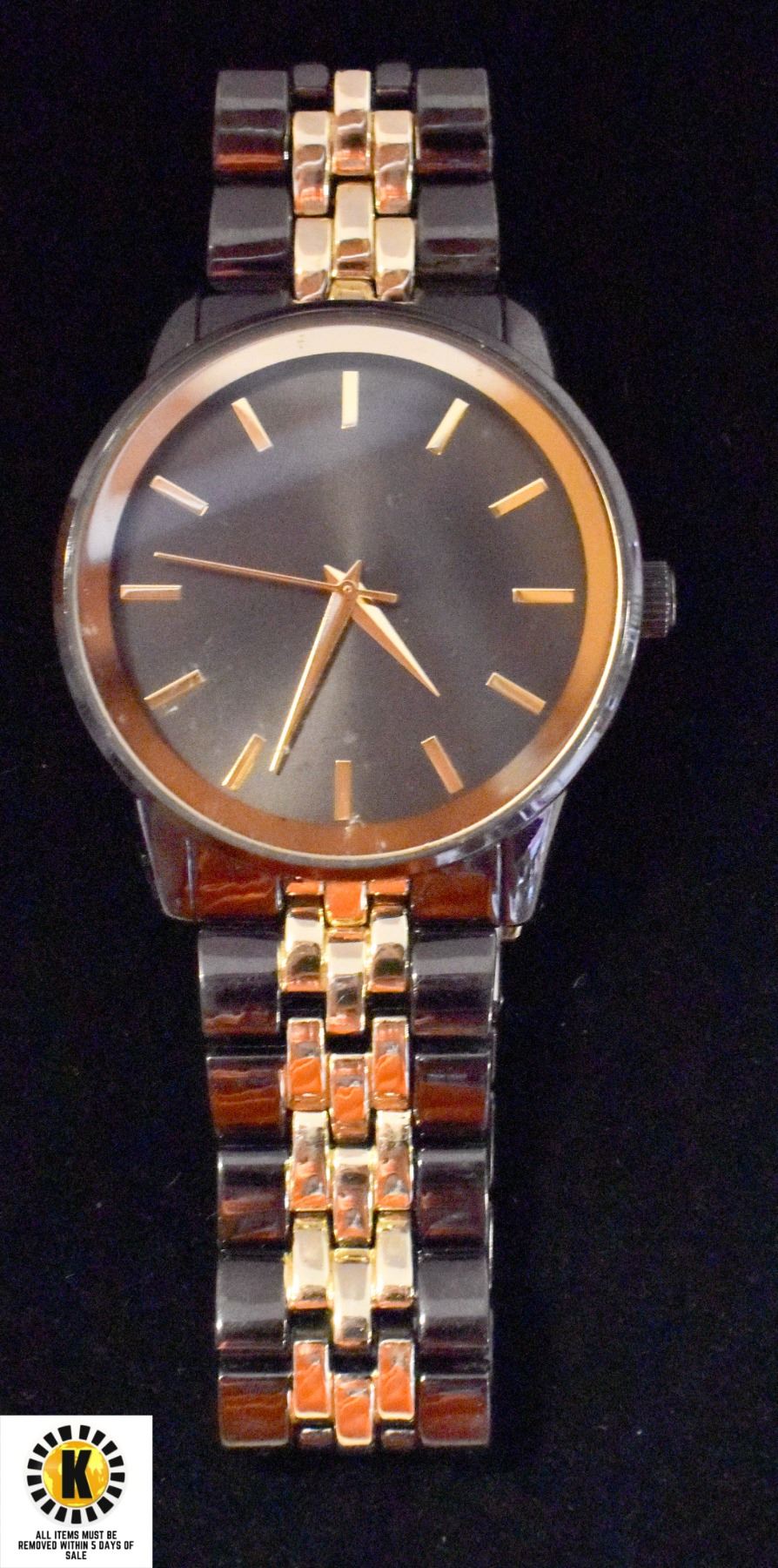 MENS BLACK AND GOLD WATCH - MAY REQUIRE BATTERY