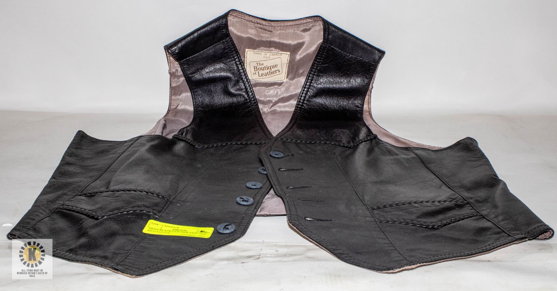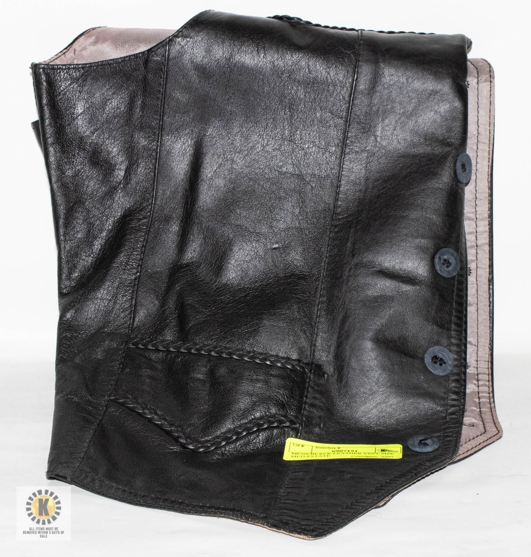 MENS BLACK LEATHER VEST SIZE MED-ESTATE
