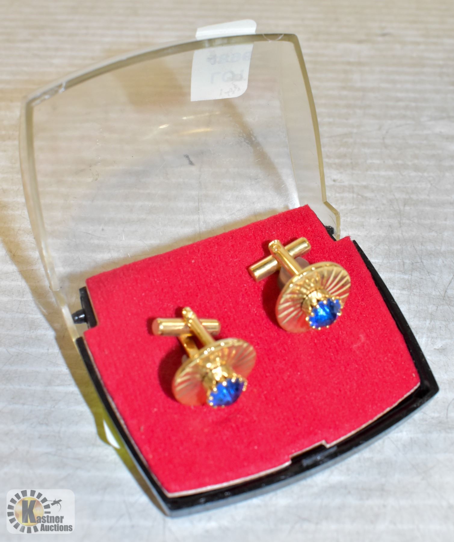 MENS BLUE SAPPHIRE STYLE CUFFLINKS IN GIFT CASE