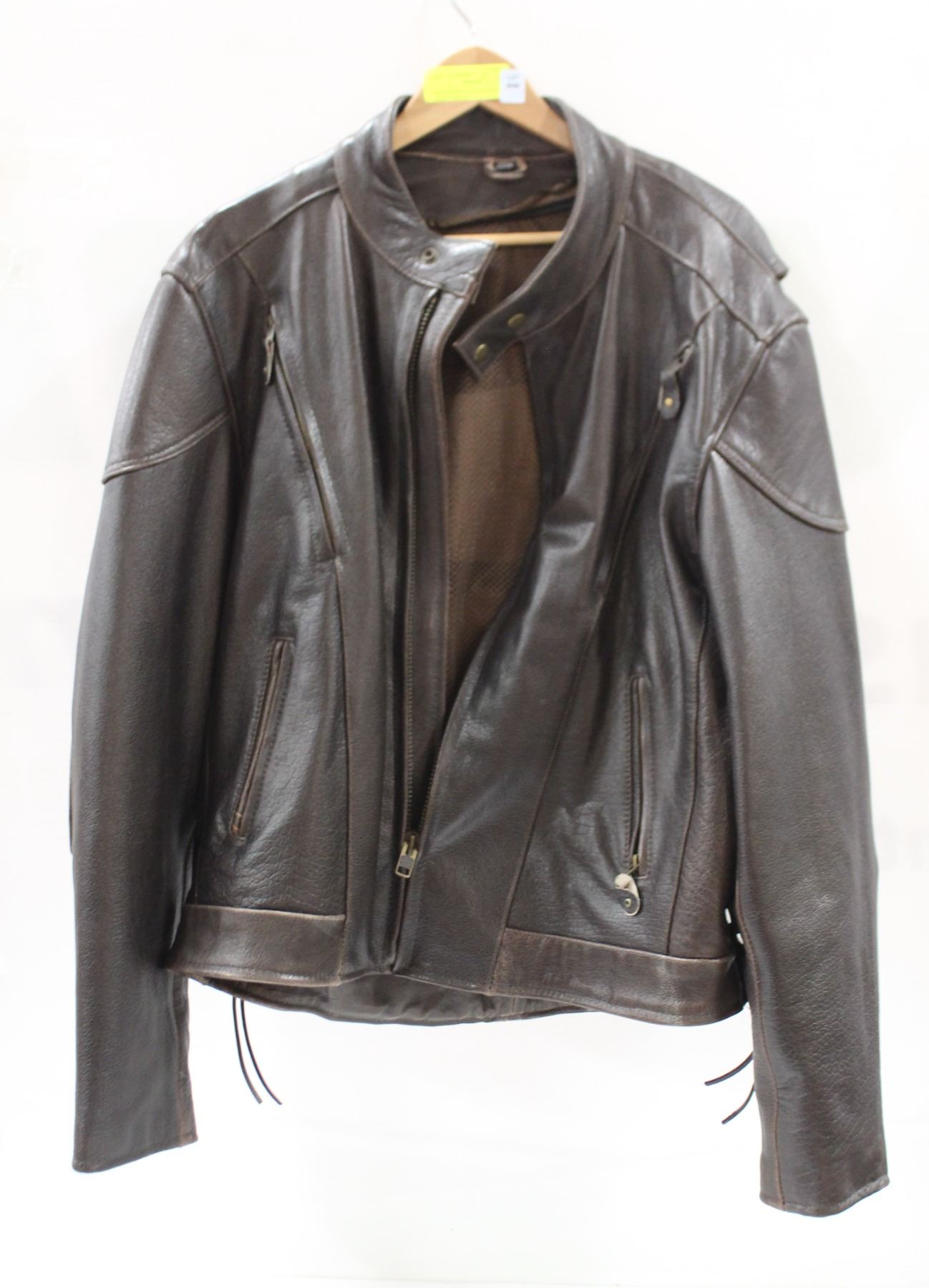 MENS BROWN LEATHER BIKE JACKET SIZE XL