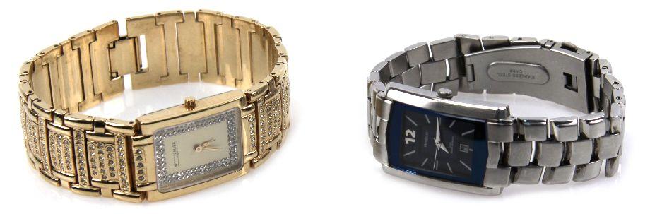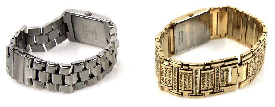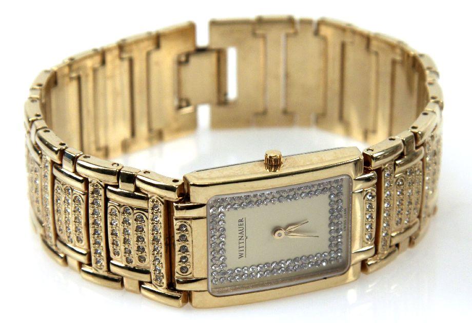 Included is a Wittnauer Men's dress watch in gold tone with Swarovski crystals on dial and band. Very good condition. Also included is a Men's Armitron dress watch with bluedial and date. Good condition. Weight: SP Condition: very good