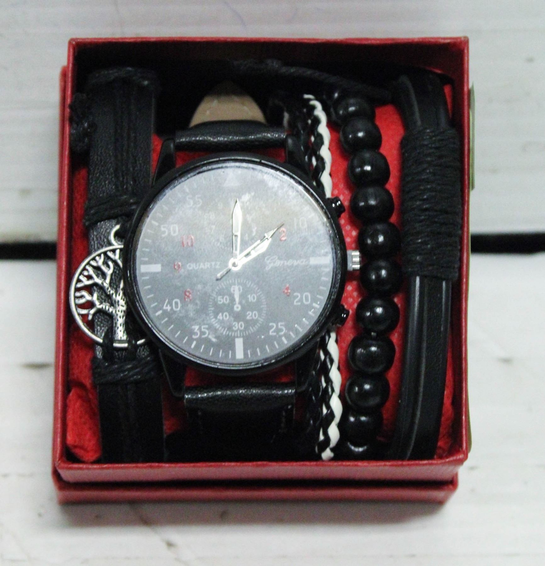 MENS GENEVA QUARTZ WATCH WITH JEWELRIES BLACK NEW