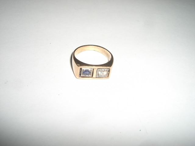 MENS ITALIAN 585 GOLD SAPPHIRE/DIAMOND RING TOTAL WEIGHT IS 6.5 GRAMS STAMPED *585*!! RING CAME OUT OF SAFE!! ***Coin, Currency & All Items Listed in this auction - Grades, Conditions and Values are not Safe Deposit Coins LLC Responsibilty. Grades, Condition and Values are determined by Consigner(s) & Buyers ONLY