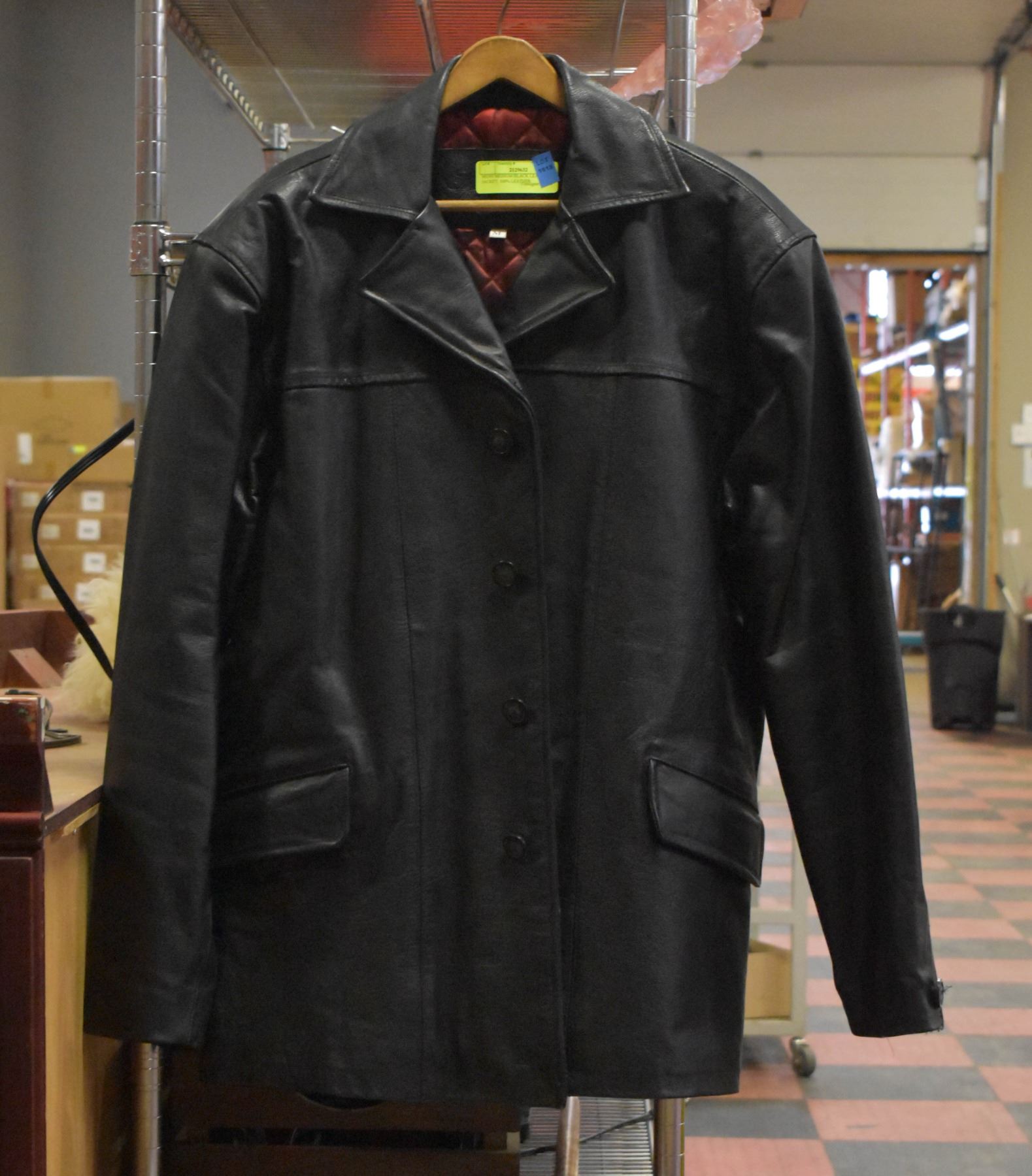 MENS MEDIUM BLACK LEATHER JACKET, 100% LEATHER